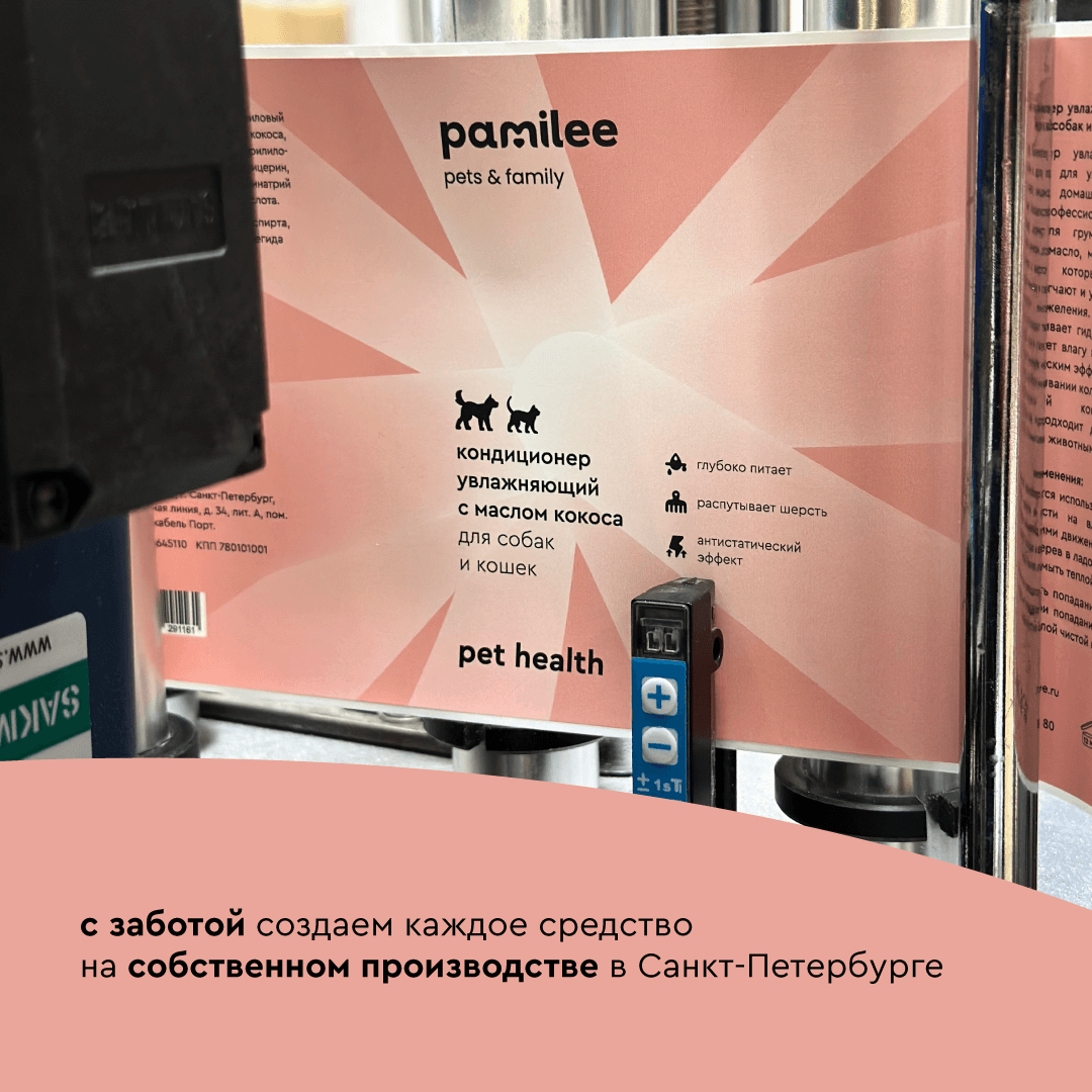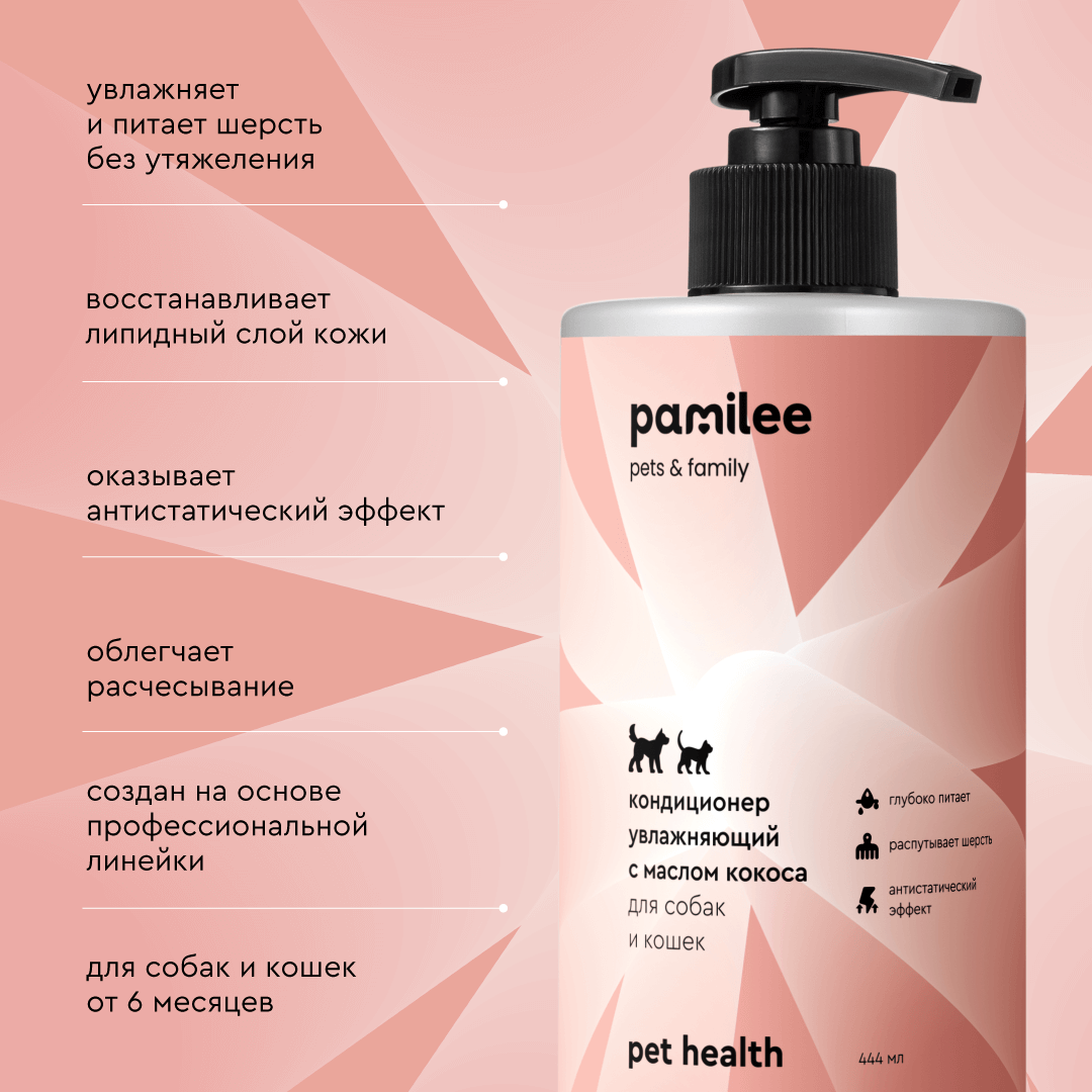 Кондиционер увлажняющий с маслом кокоса для собак и кошек Pamilee, 444 мл интересное:
