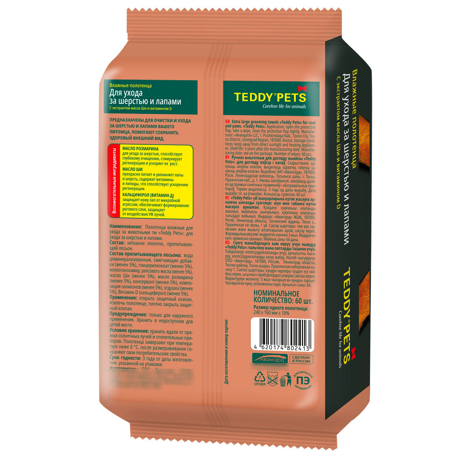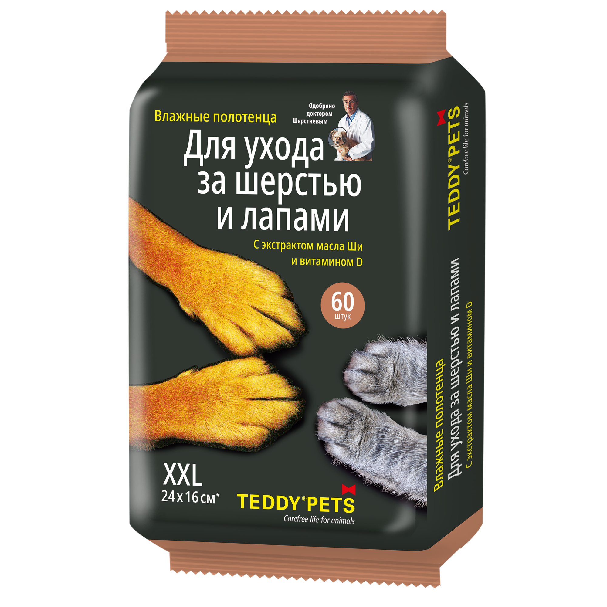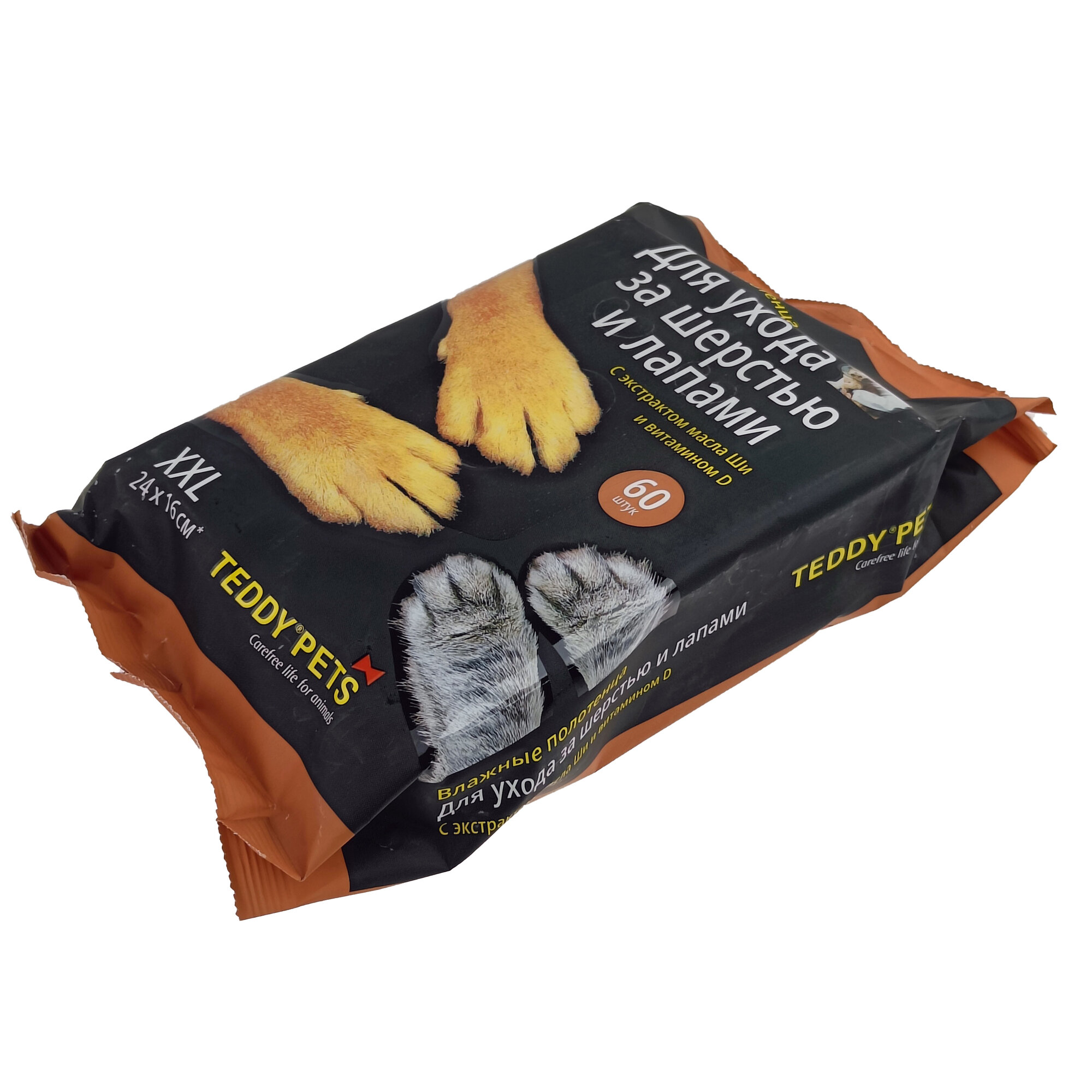 Купить Влажные салфетки Teddy Pets полотенца для шерсти и лап с маслом Ши и витамином D