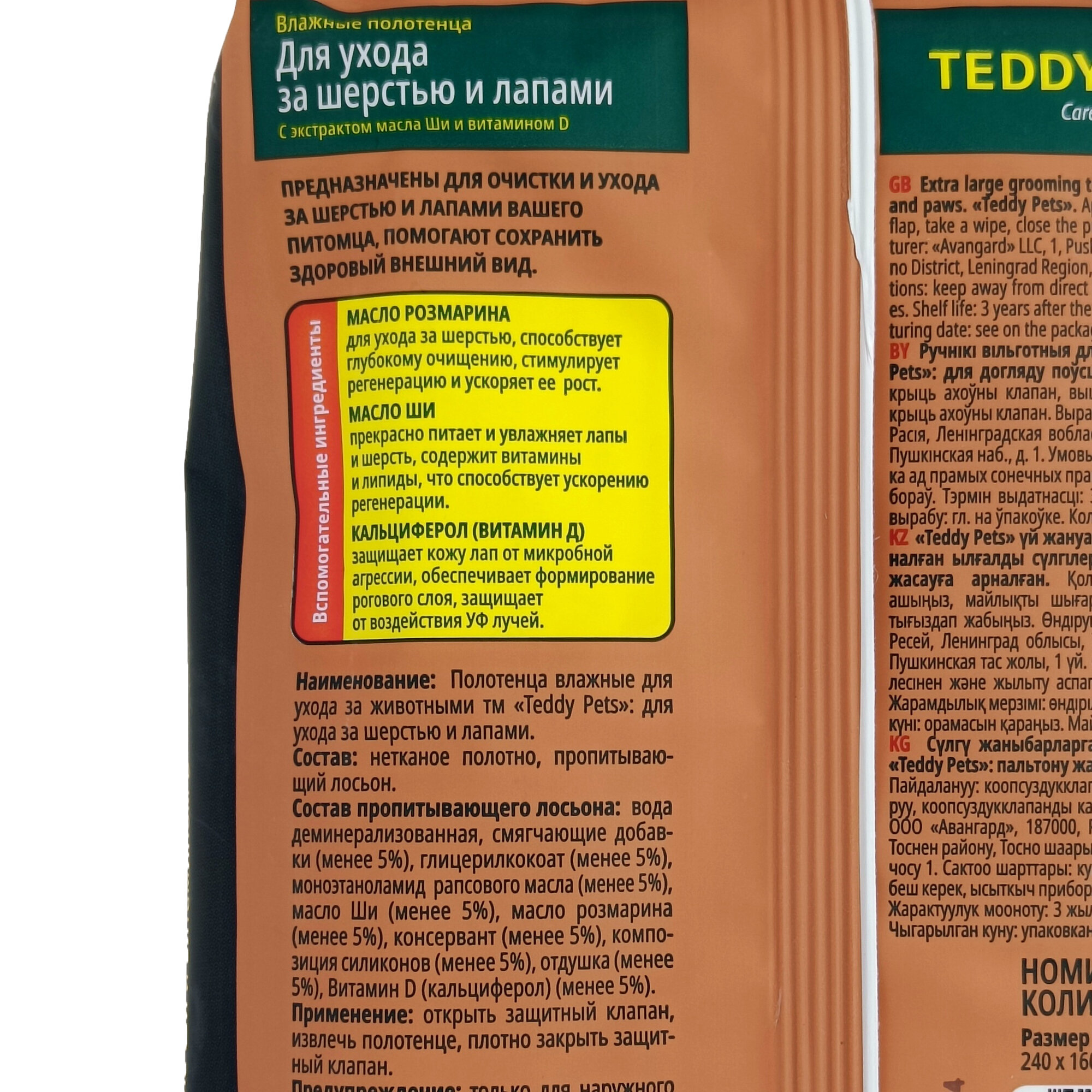 Влажные салфетки Teddy Pets полотенца для шерсти и лап с маслом Ши и витамином D интересное:
