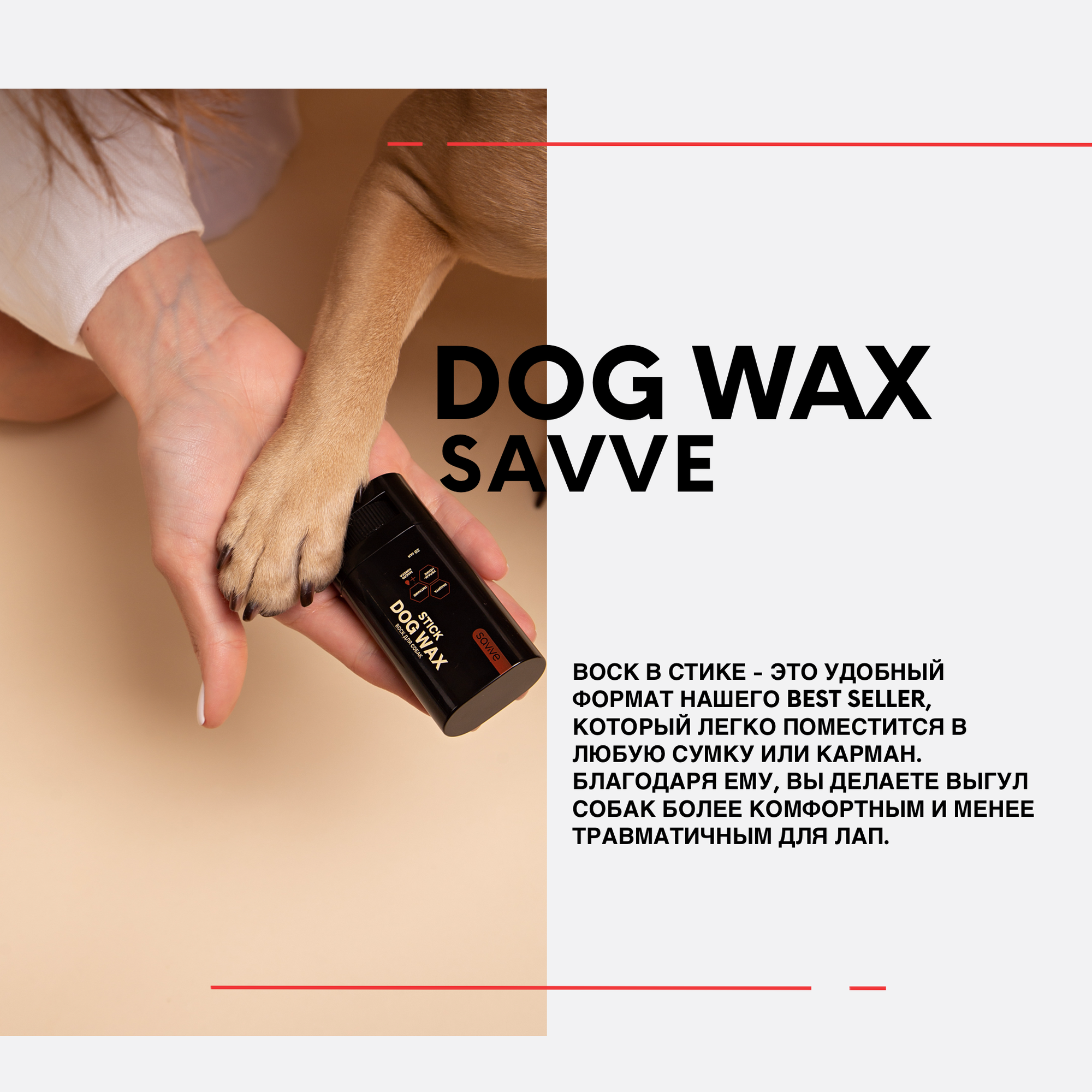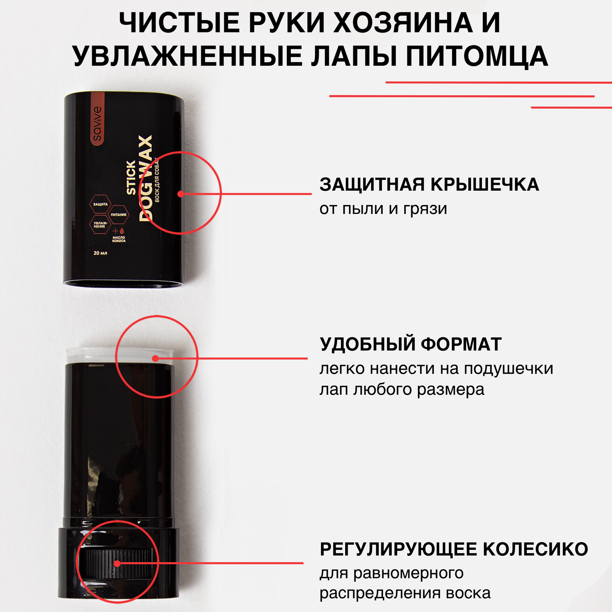 Воск для лап собак SAVVE Dog Wax STICK, защита от реагентов, питание, увлажнение интересное: