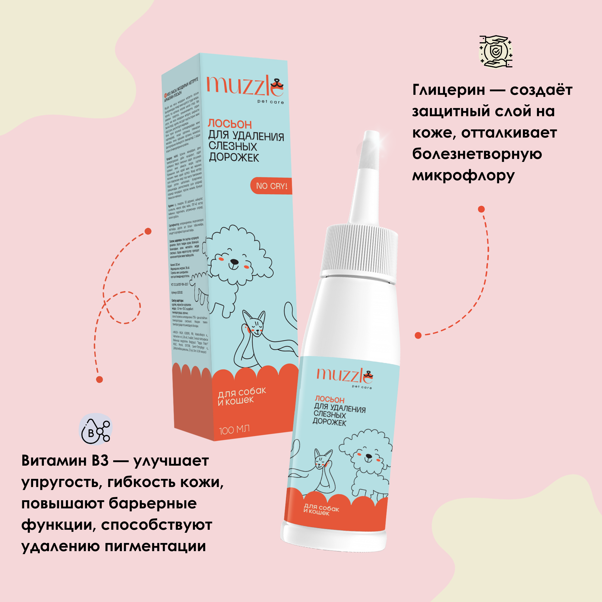 Лосьон от слёзных дорожек Muzzle pet care для собак кошек, 100 мл интересное: