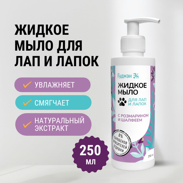 Жидкое мыло Гудмэн для лап и лапок с розмарином и шалфеем, 250 мл интересное: