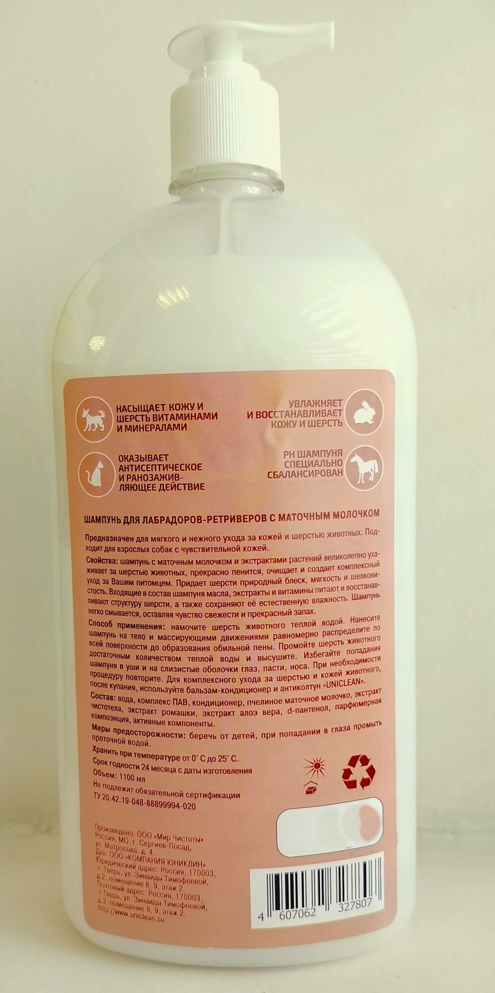 Шампунь Uniclean для лабрадоров-ретриверов с маточным молочком 1100 мл 4202 интересное: