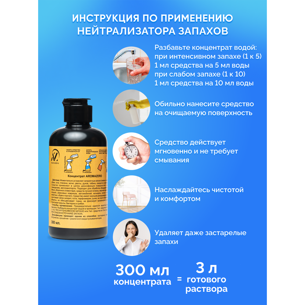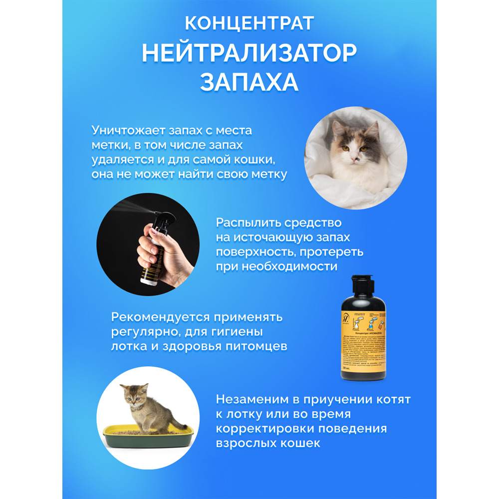 Нейтрализатор запаха от мочи Животных. Ликвидатор запаха для кошачьего туалета AromaZero, Аромазеро 300мл = 3 литра готового раствора