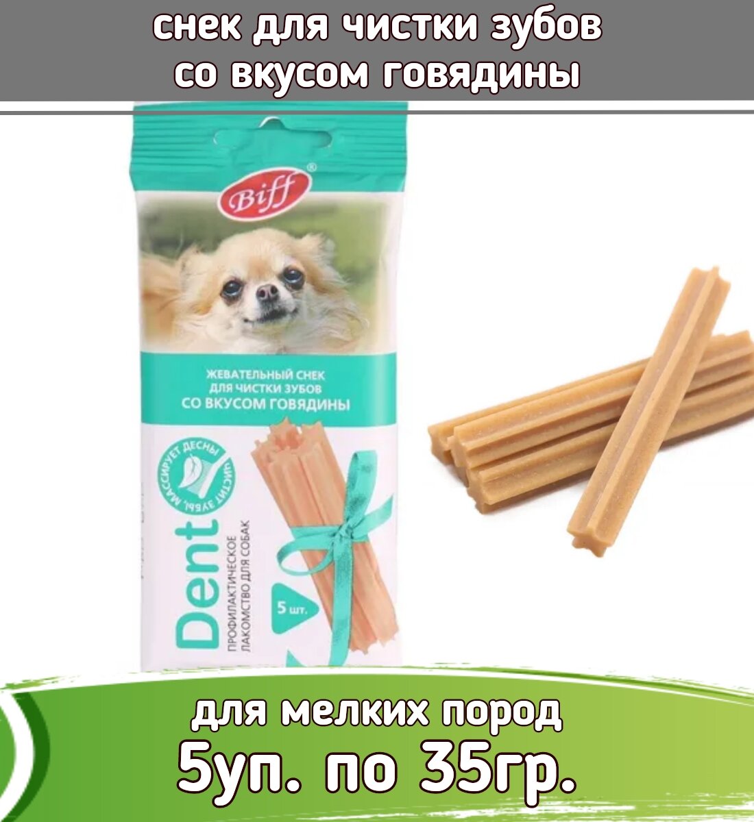 Biff 5уп х 35г Dent снек для чистки зубов со вкусом говядины для собак мелких пород интересное: