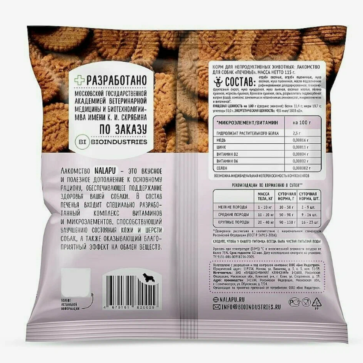 NALAPU печенье для собак для улучшения состояния кожи и шерсти 115 г