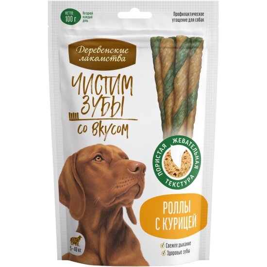 Деревенские лакомства Чистим зубы Роллы с курицей д/собак 100г интересное: