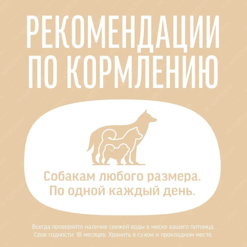 | Состав | Ингредиенты: Кукурузный крахмал, курица, говяжий жир, куриная печень, картофельный крахмал, соевый изолят, шпинат сушенный, соль, глицерин, сорбит, сорбат калия, хлорофилл. Возможны остаточные следы: кролика, индейки, баранины, рыбы, ракообразных и их субпродуктов. Гарантируемые показатели: Белки - 10, жиры -8 , клетчатка -1,5, зола - 4, влажность -15 |
