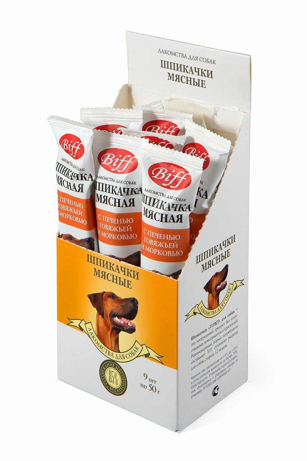 Лакомство Biff шпикачки с говяжьей печенью и морковью для собак (50 г)