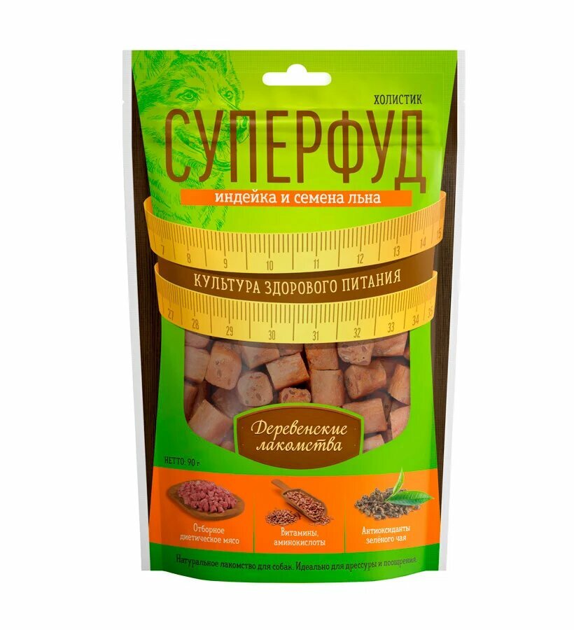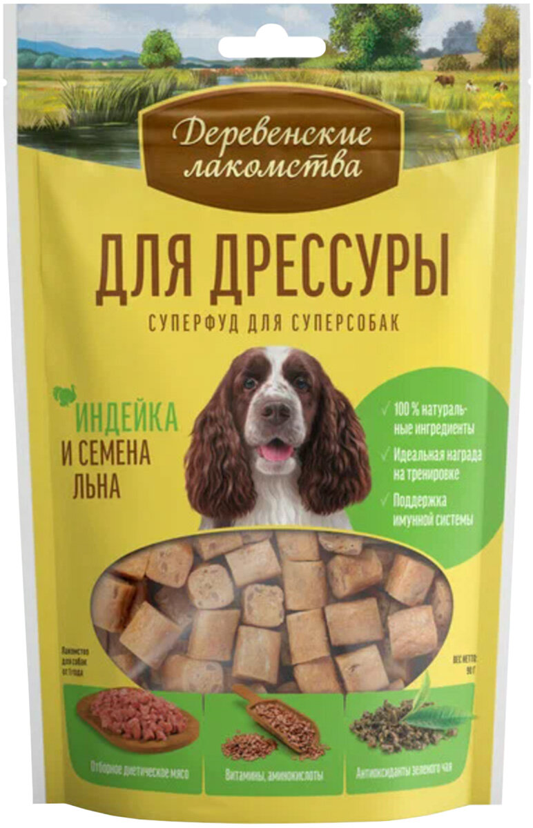 Деревенские лакомства суперфуд натуральное лакомство для дрессировки собак с индейкой и семенами льна - 90 г интересное: