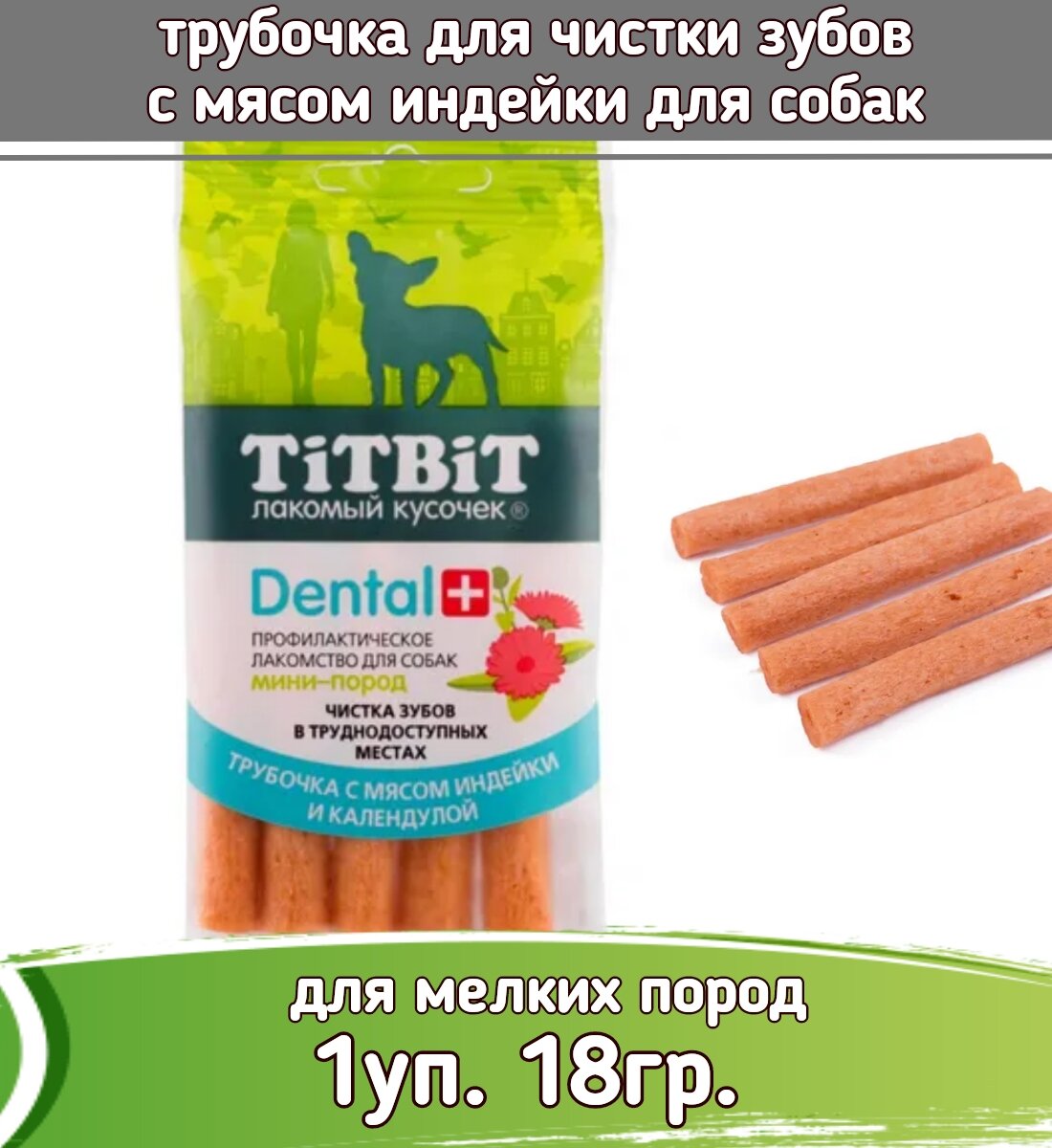 TitBit ДЕНТАЛ+ Трубочка с мясом индейки для собак мини-пород 18г интересное: