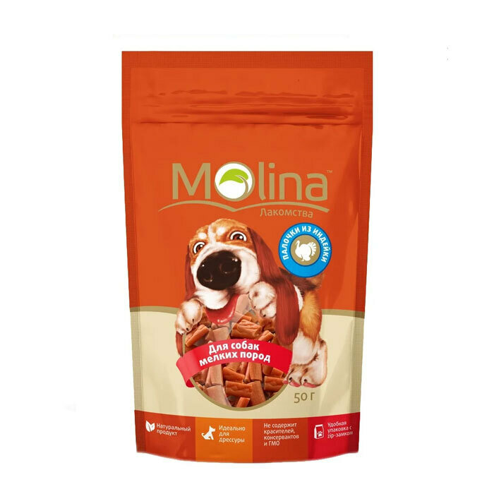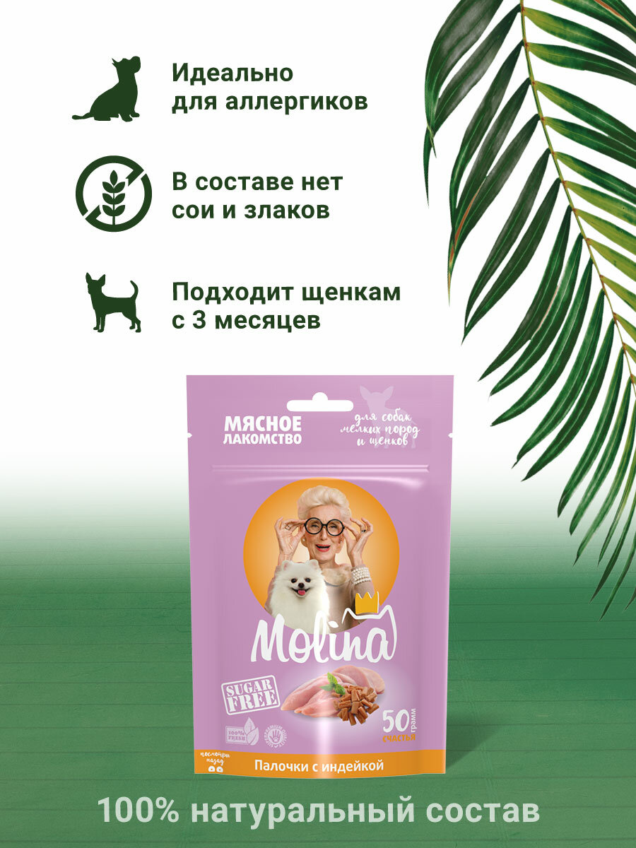 Molina лакомство для собак мелких пород и щенков "Палочки с индейкой", 50 г интересное: