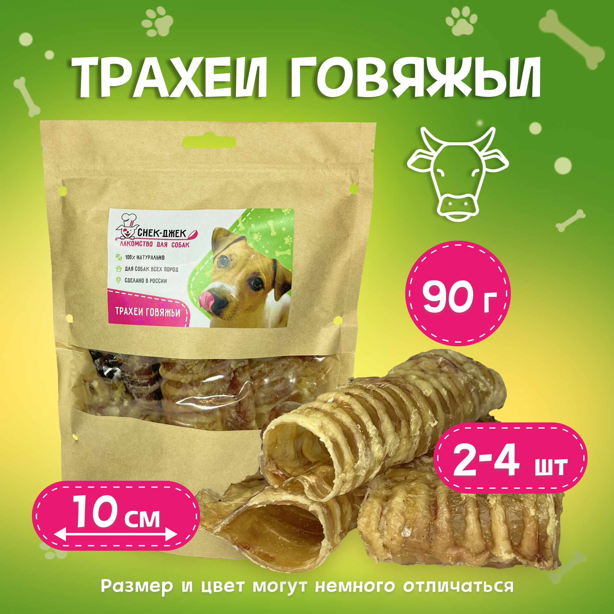 Трахея говяжья 10 см., 90 гр. - натуральное лакомство для собак Снек-Джек интересное: