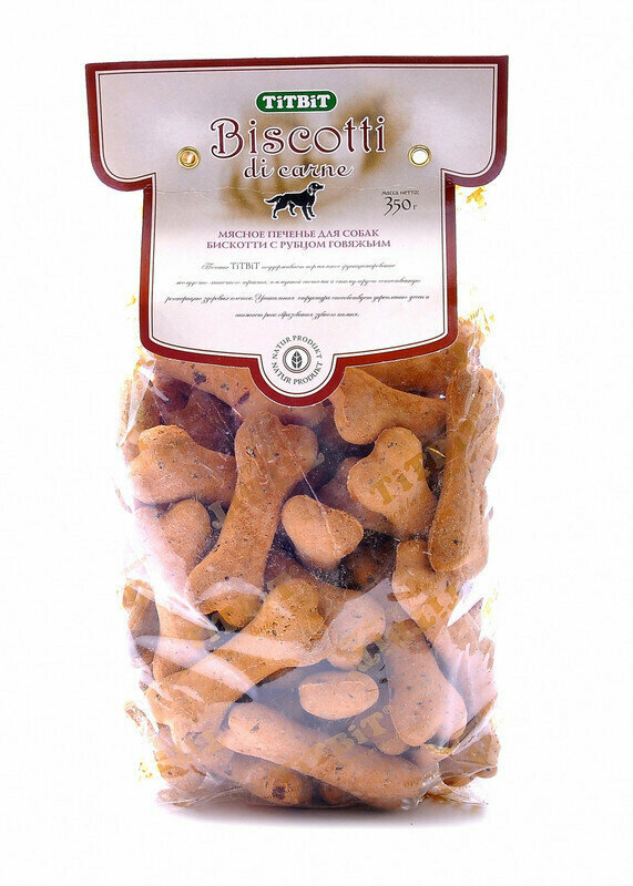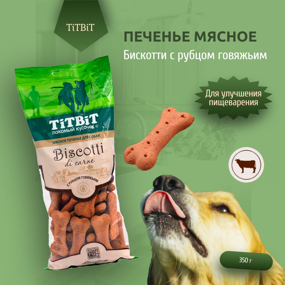 Titbit Лакомство для собак Biscotti Печенье с рубцом говяжьим 350г интересное: