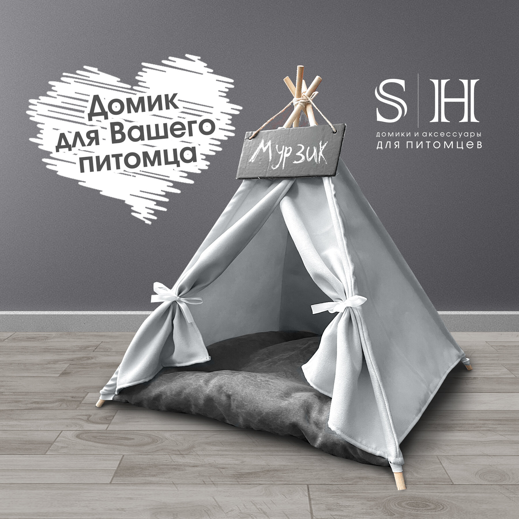 Купить Домик для животных. Вигвам-палатка для кошек и собак с лежанкой светло-серый