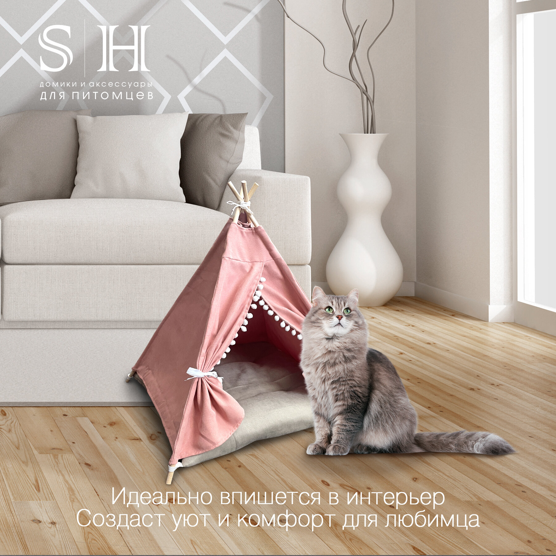 Купить Домик для животных. Вигвам-палатка для кошек и собак с лежанкой мягкий розовый
