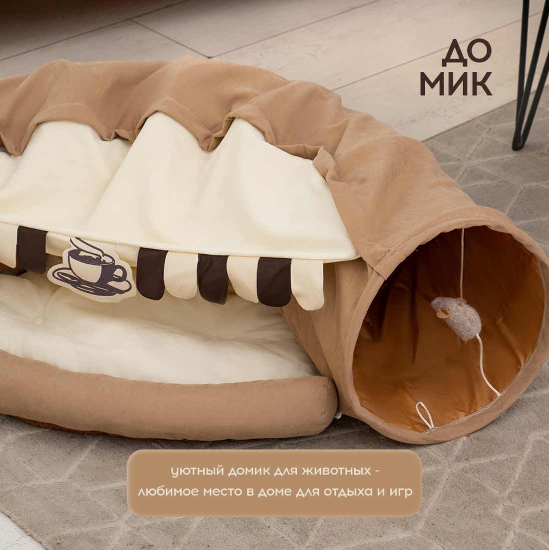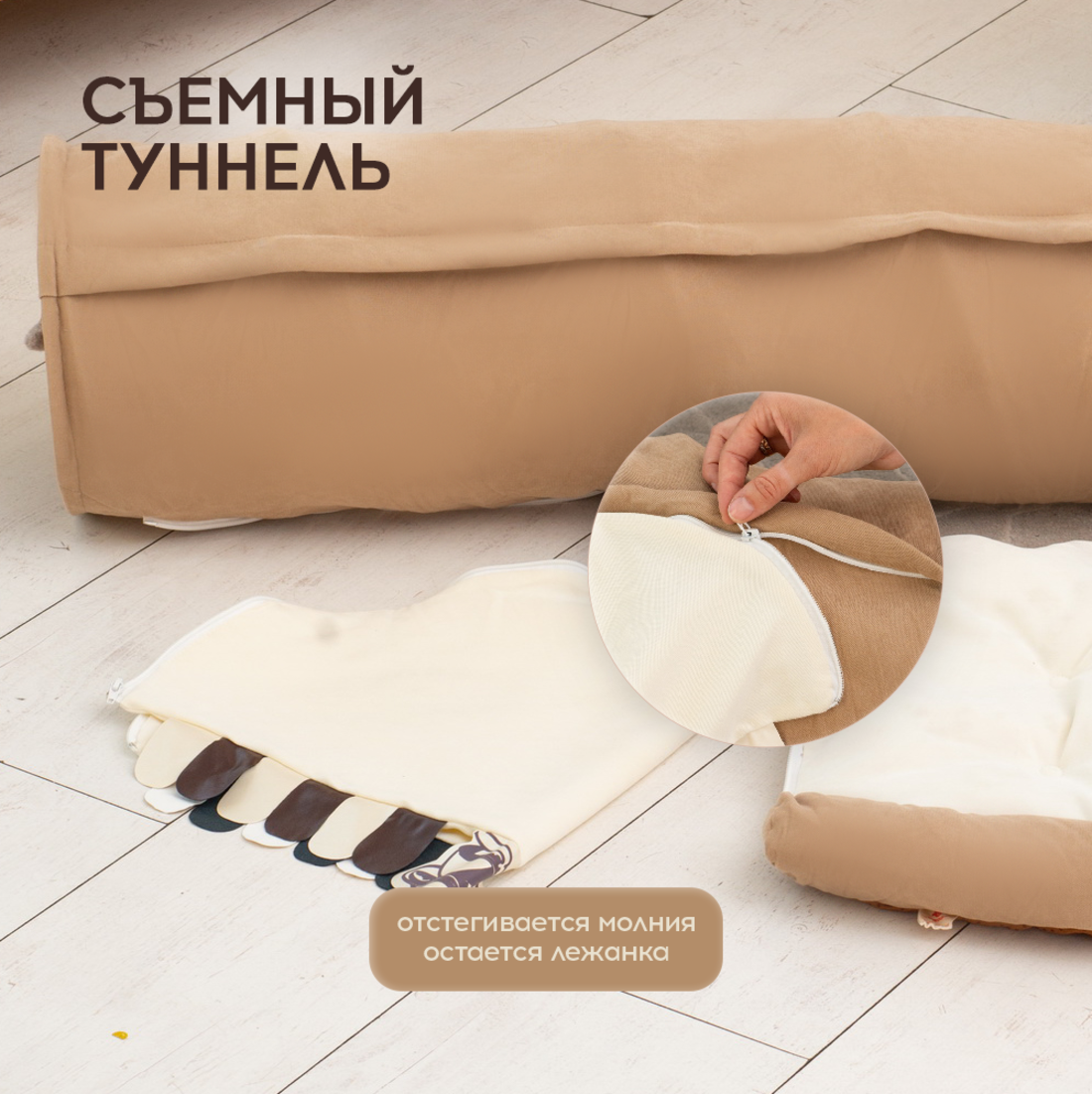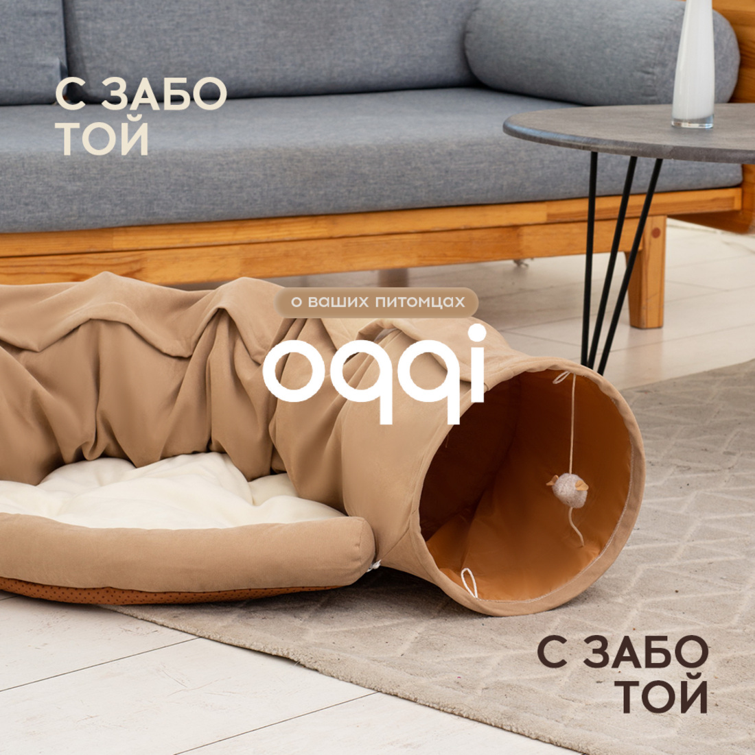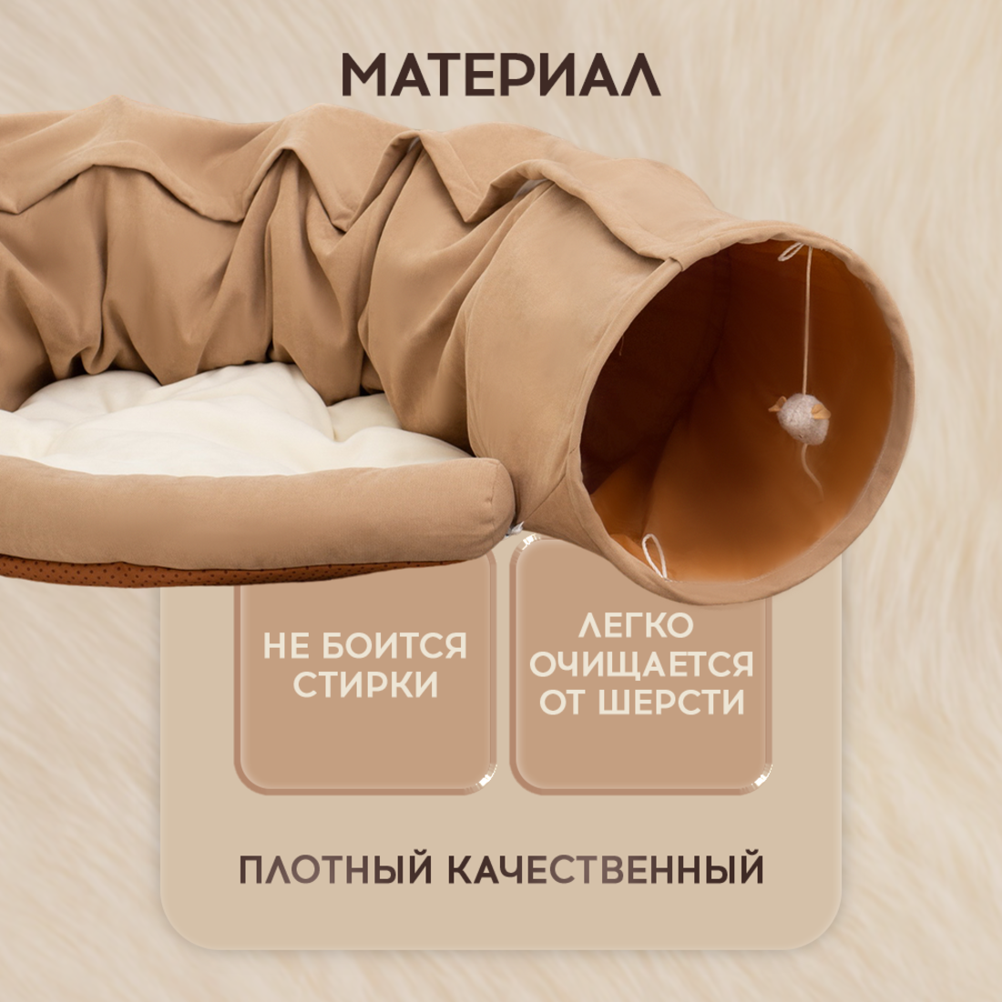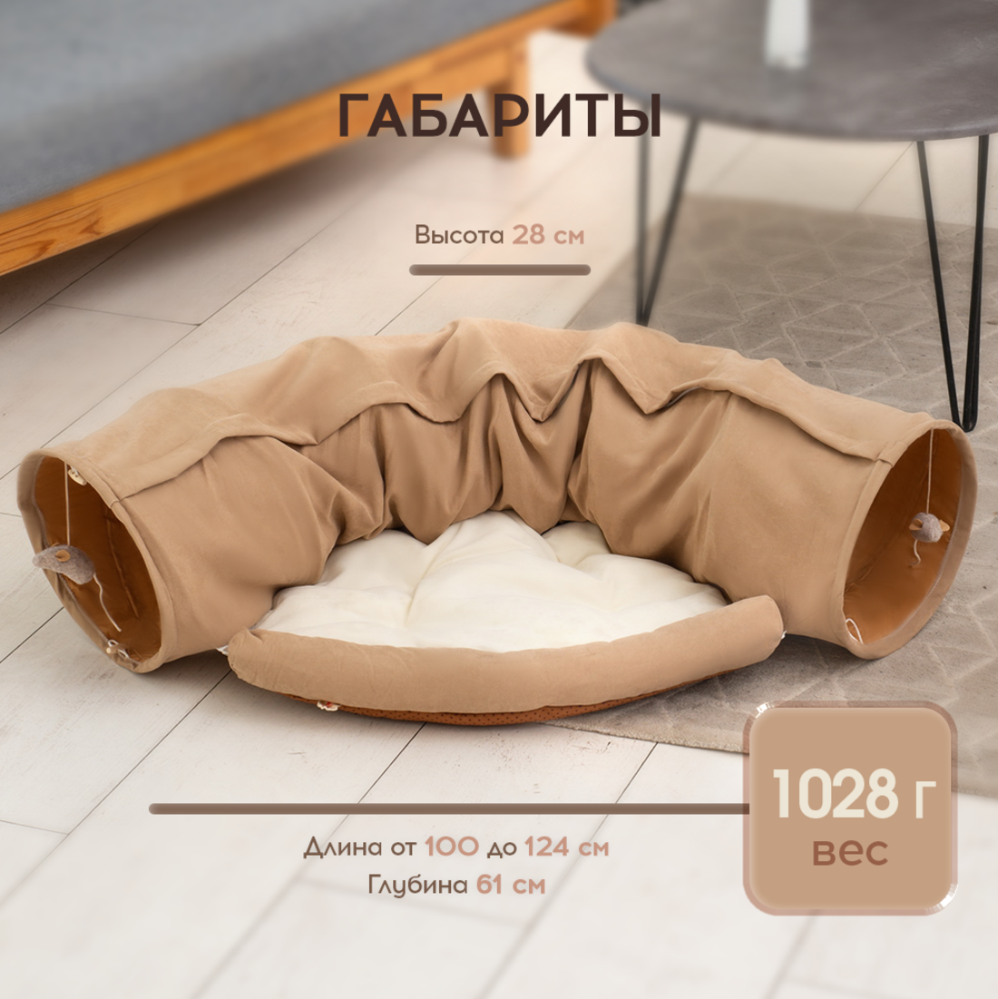 Лежанка для кошек и собак Oqqi, мягкая, с тоннелем для кошек, 28х100х61 см интересное: