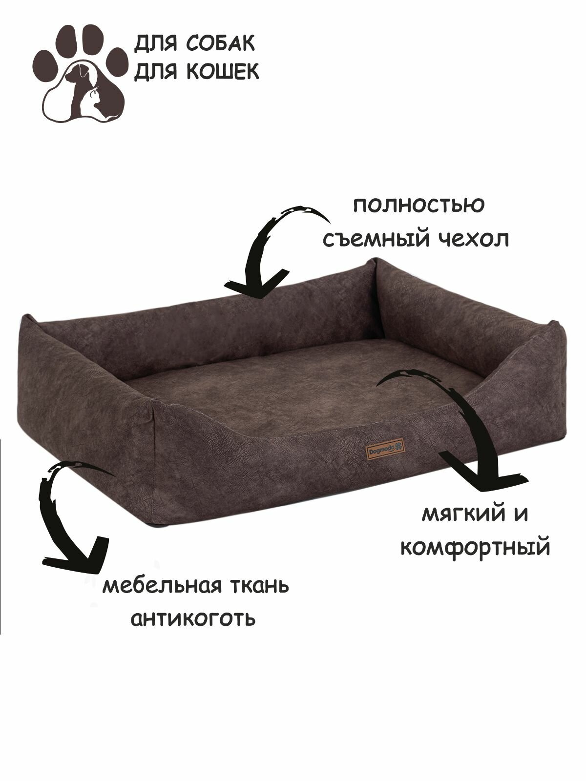 Лежак со съемным чехлом "Бинго" коричневый 97х75х20 интересное: