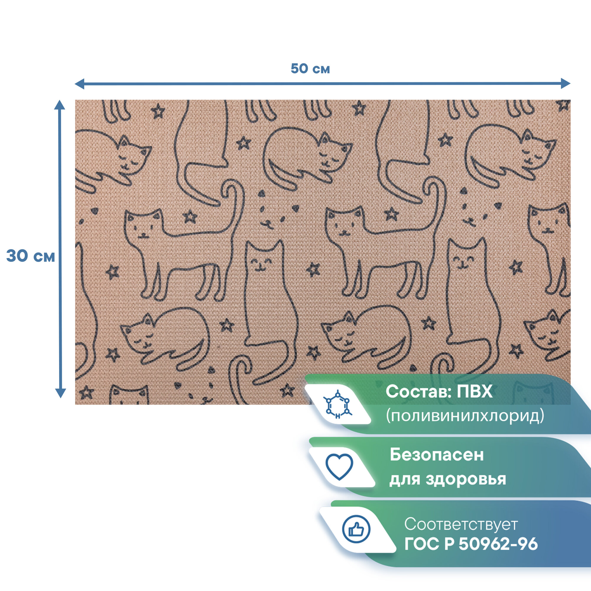 Коврик для животных под миску противоскользящий серый "Зооковрик" / коврик для кошек и собак 50х30см кошки