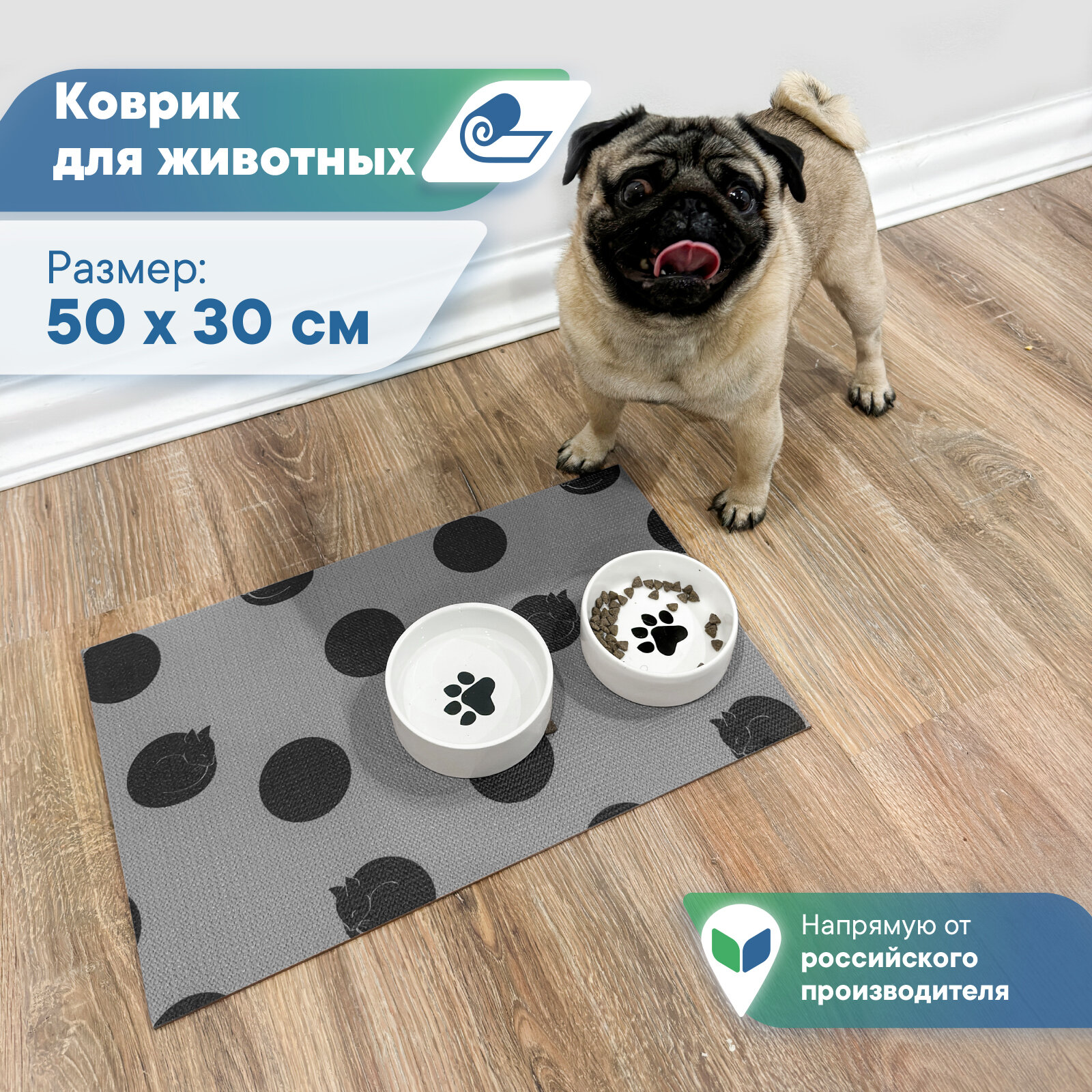 Коврик для животных под миску противоскользящий серый "Зооковрик" / коврик для кошек и собак 50х30см кошки