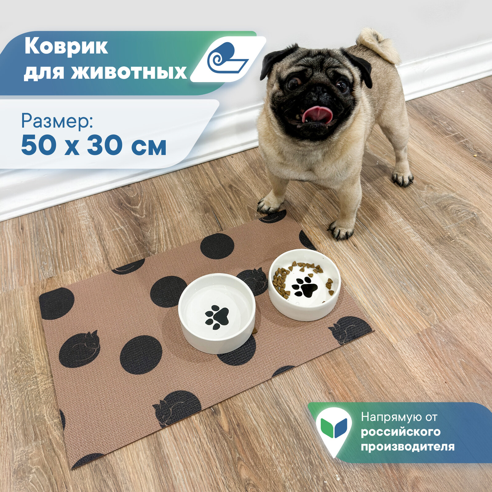 СохранитьКоврик для животных под миску противоскользящий коричневый "Зооковрик"/ коврик для кошек и собак 50х30см-горошек интересное: