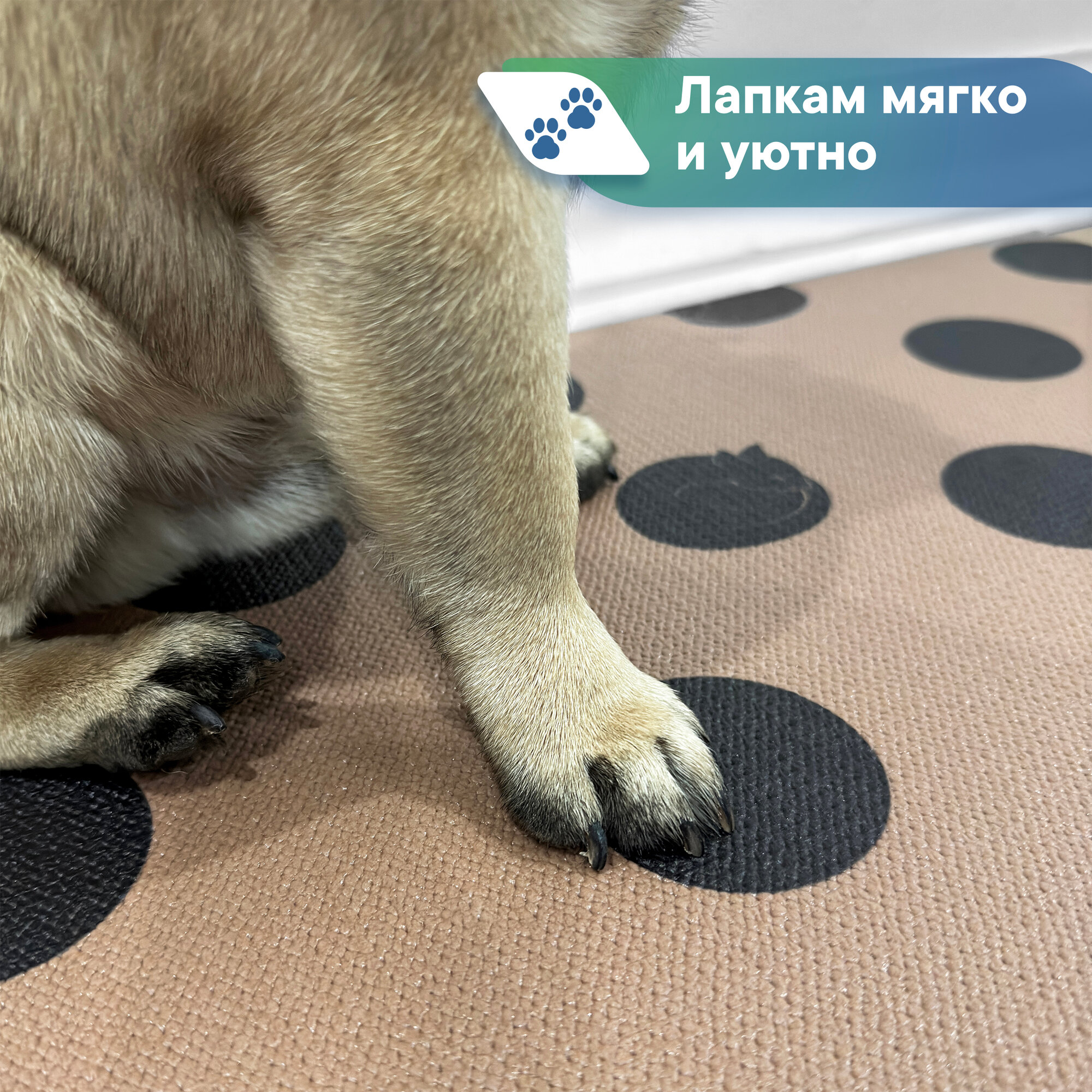 Коврик для животных под миску противоскользящий коричневый "Зооковрик" / коврик для кошек и собак 61х100 см горошек