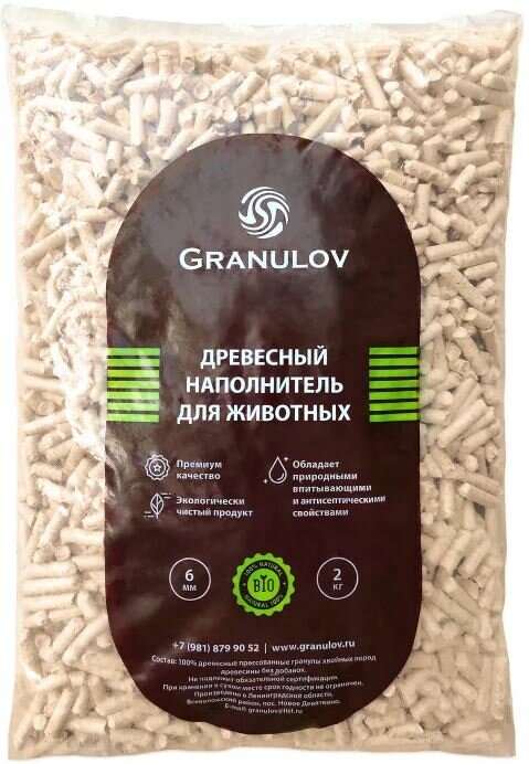 Granulov Древесный наполнитель впитывающий (сосна), 2кг интересное:
