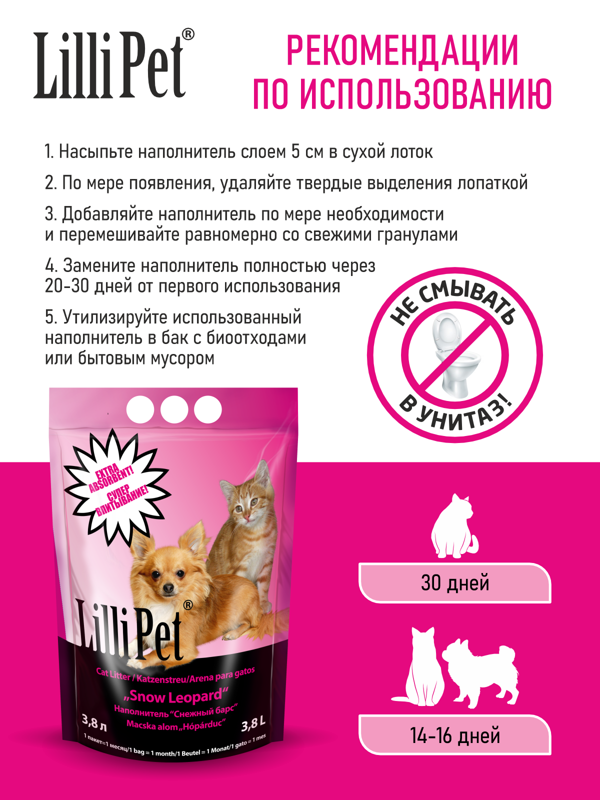 Наполнитель силикагелевый Lilli Pet SNOW LEOPARD для кошачьего лотка, 3.8л интересное: