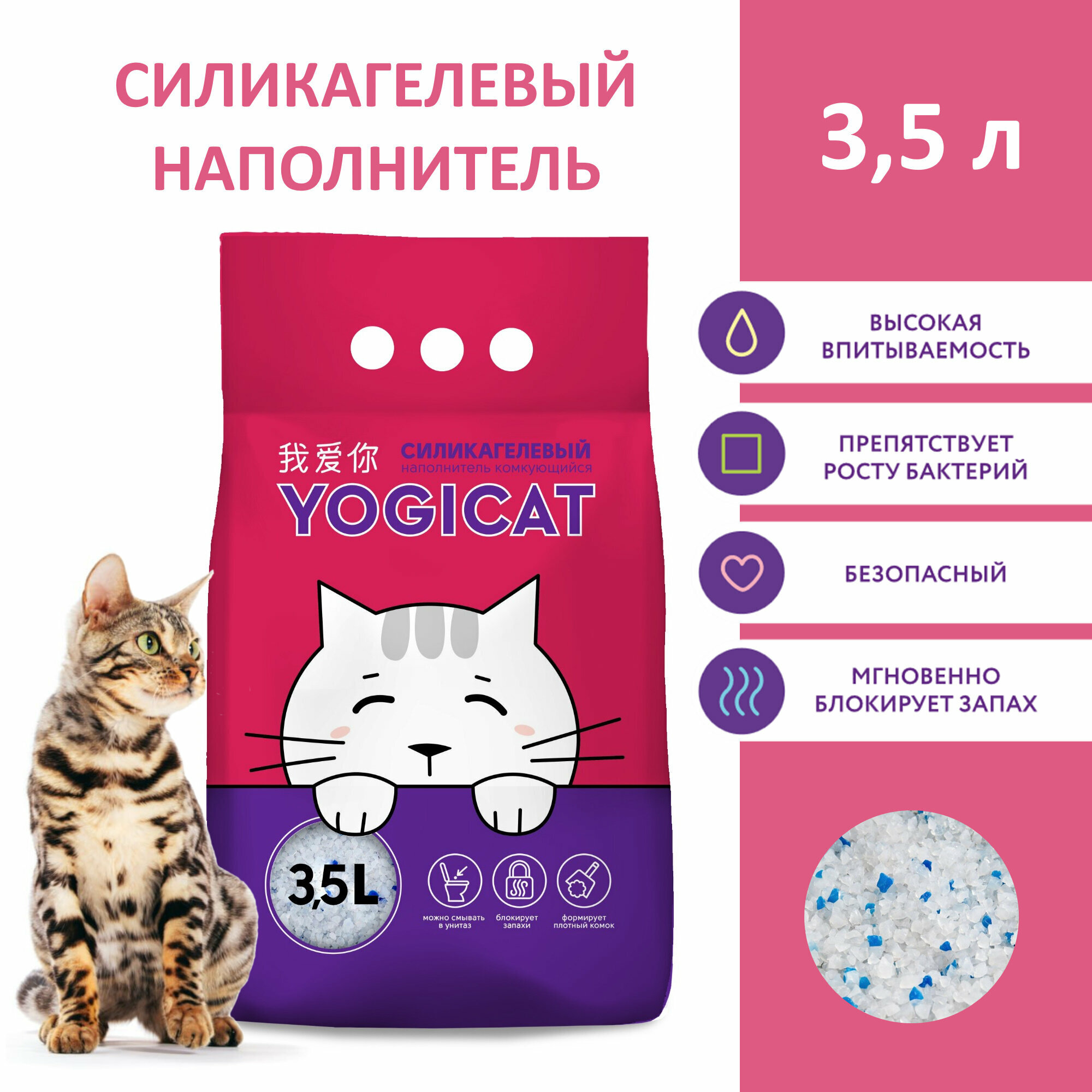 Впитывающий силикагелевый наполнитель для кошачьего туалета YogiCat 3,5 литра интересное: