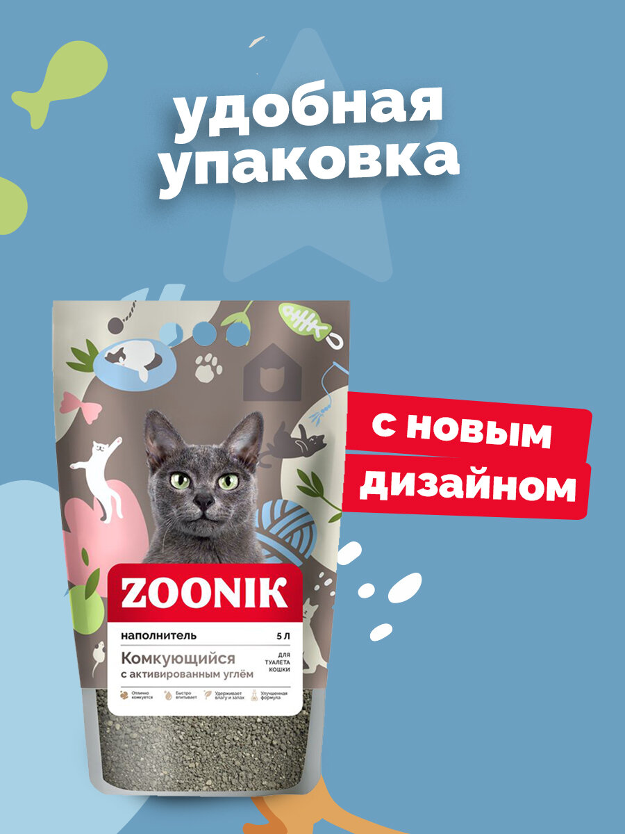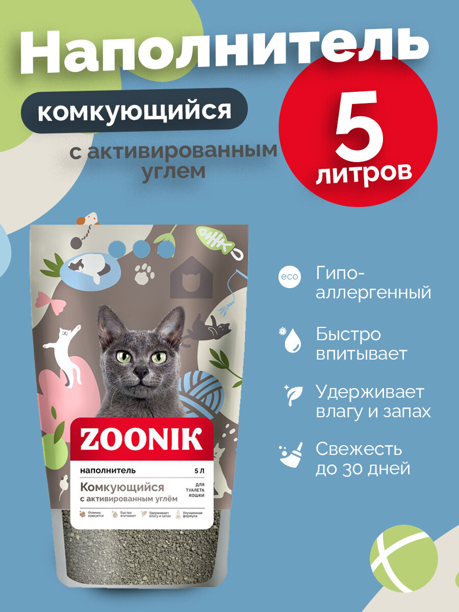 Зооник комкующийся наполнитель комкующийся для туалета кошек с активированным углем (5 л) интересное:
