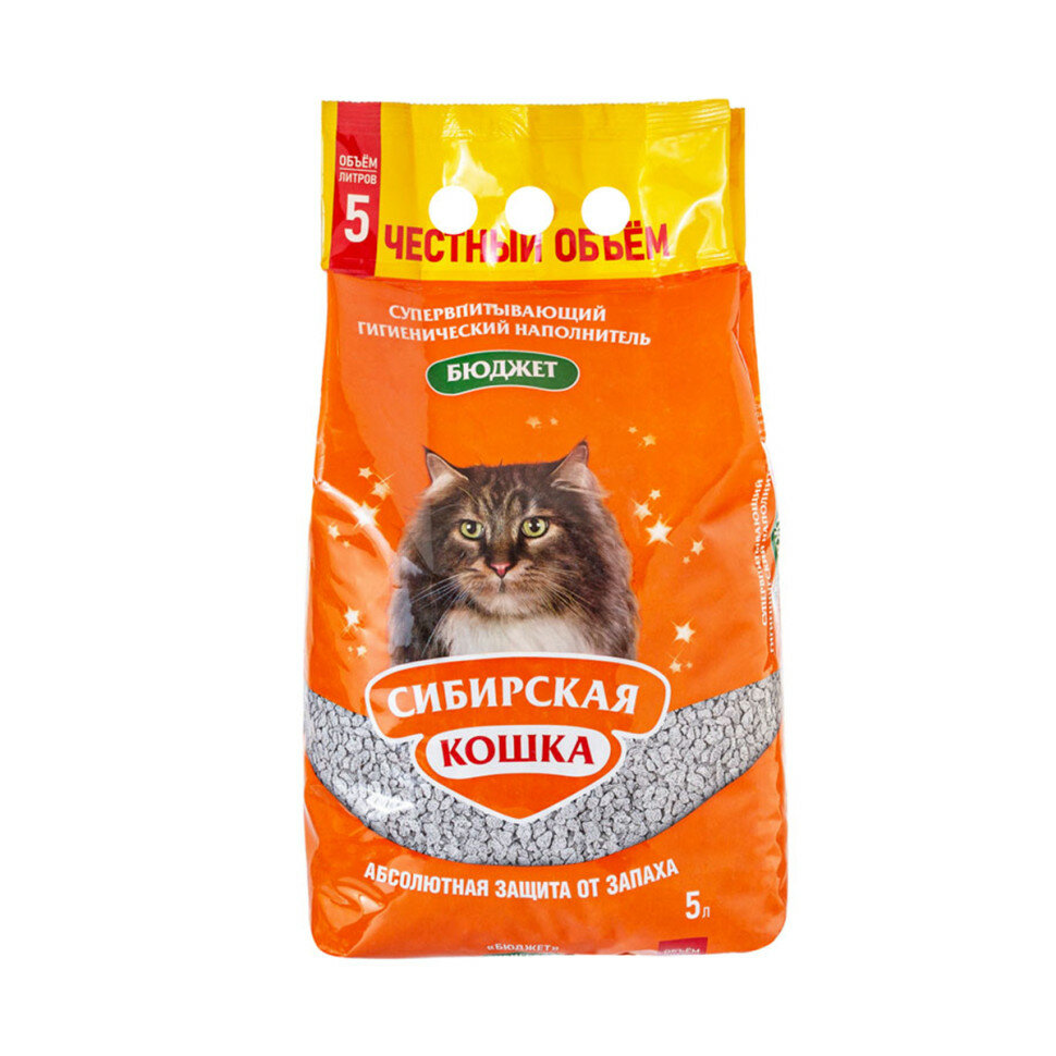 Наполнитель для кошачьего туалета 5л Бюджет СИБИРСКАЯ КОШКА впитывающий, гранулы гидросиликата кальция