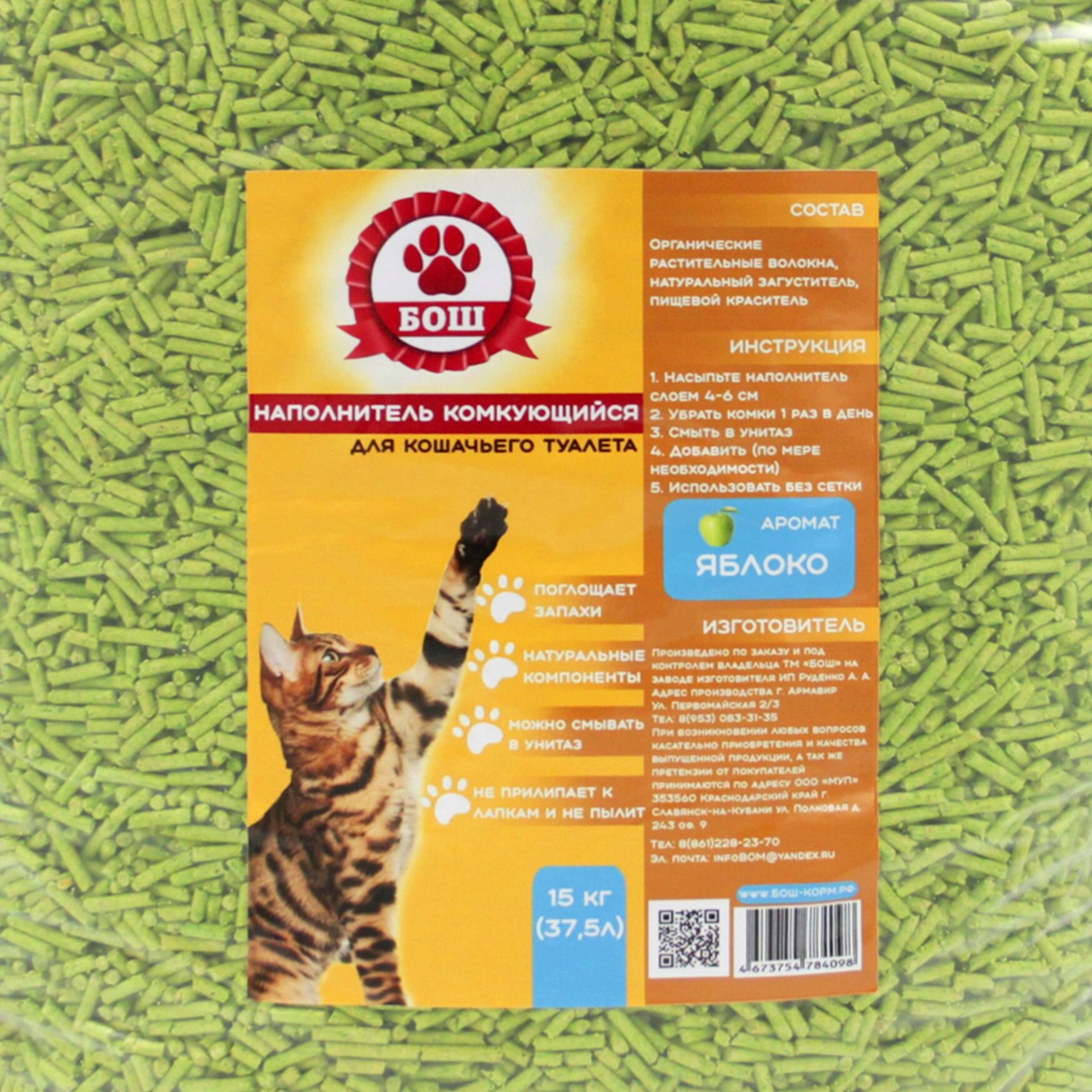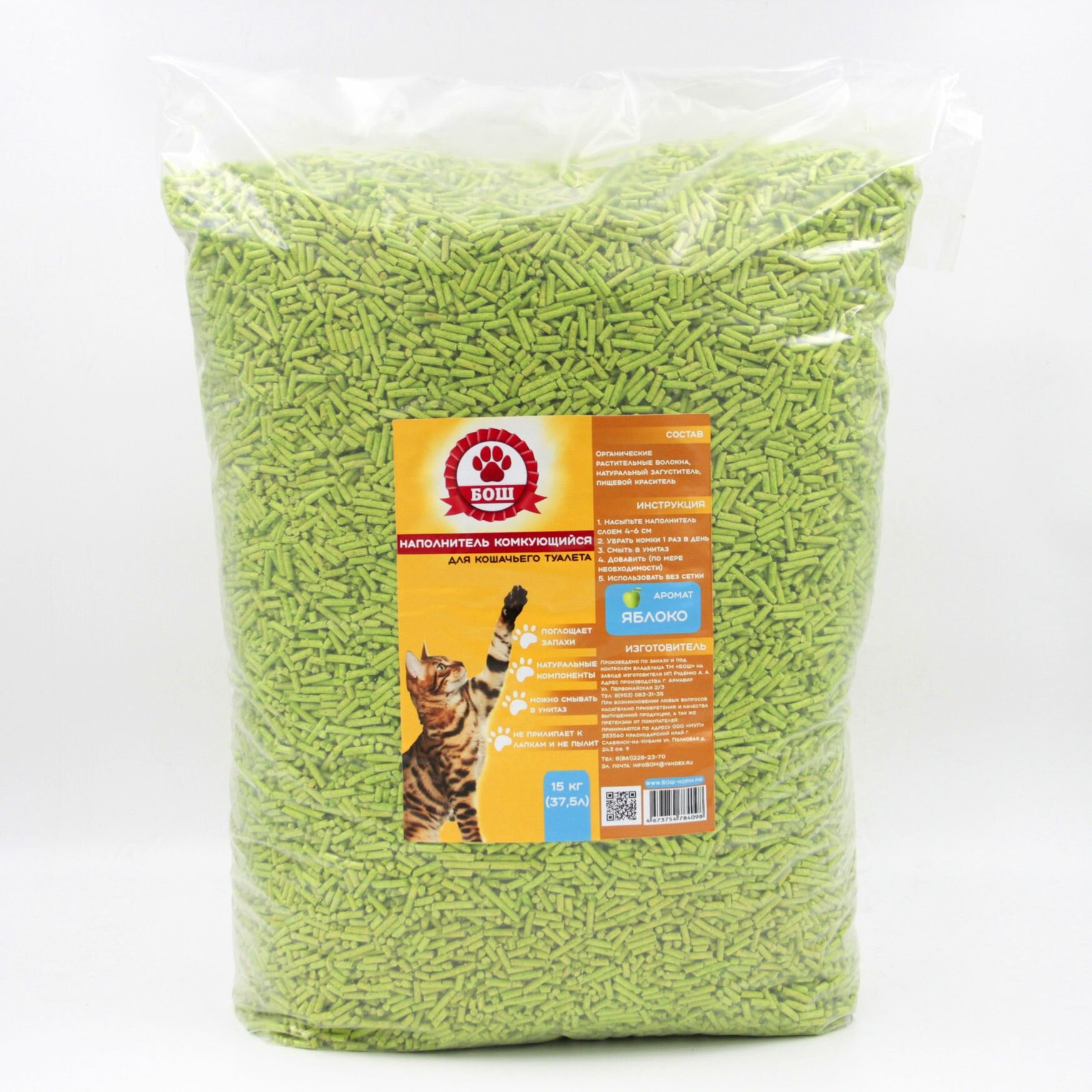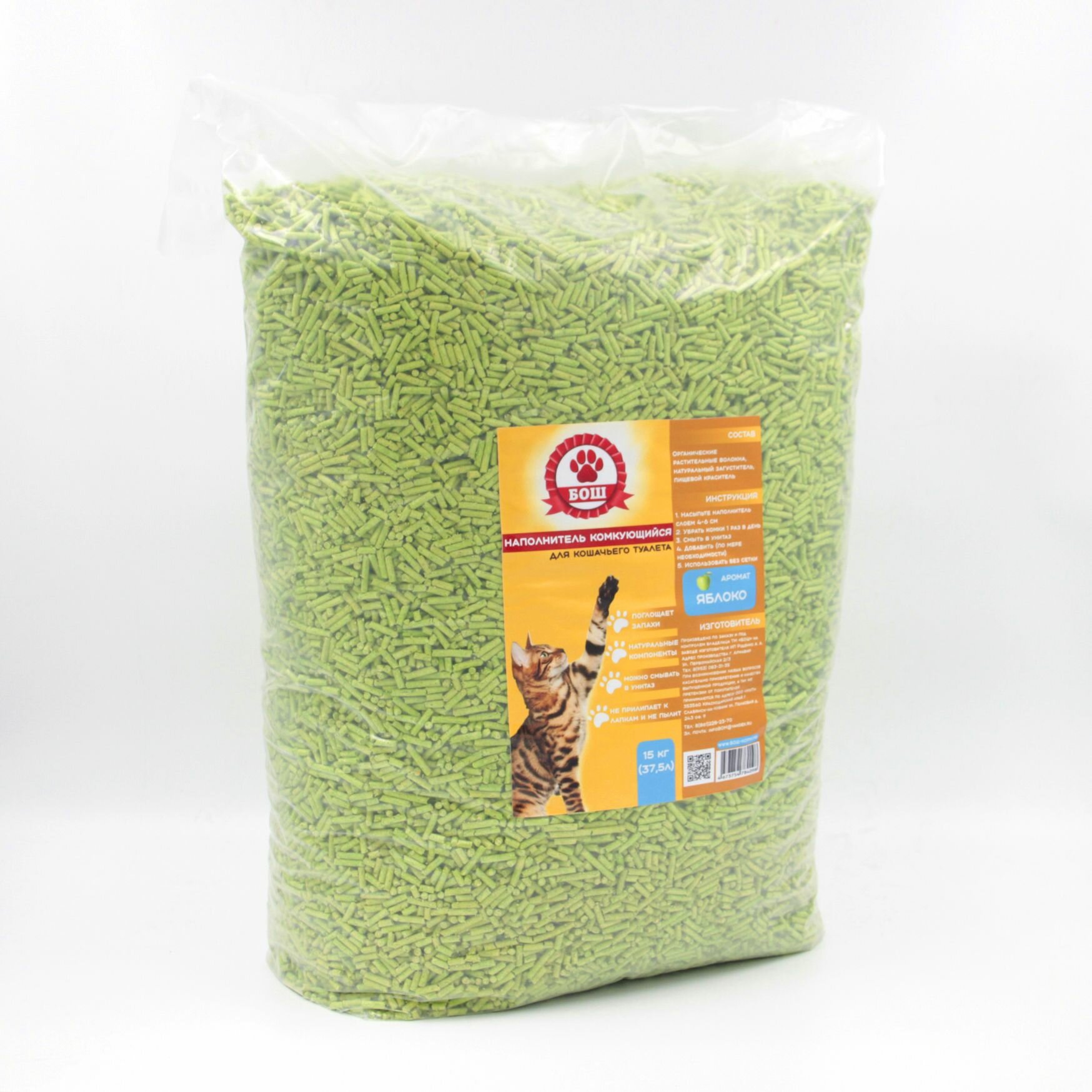 Наполнитель для кошачьего лотка бошпро, комкующийся, аромат Яблоко, смываемый, 15 кг
