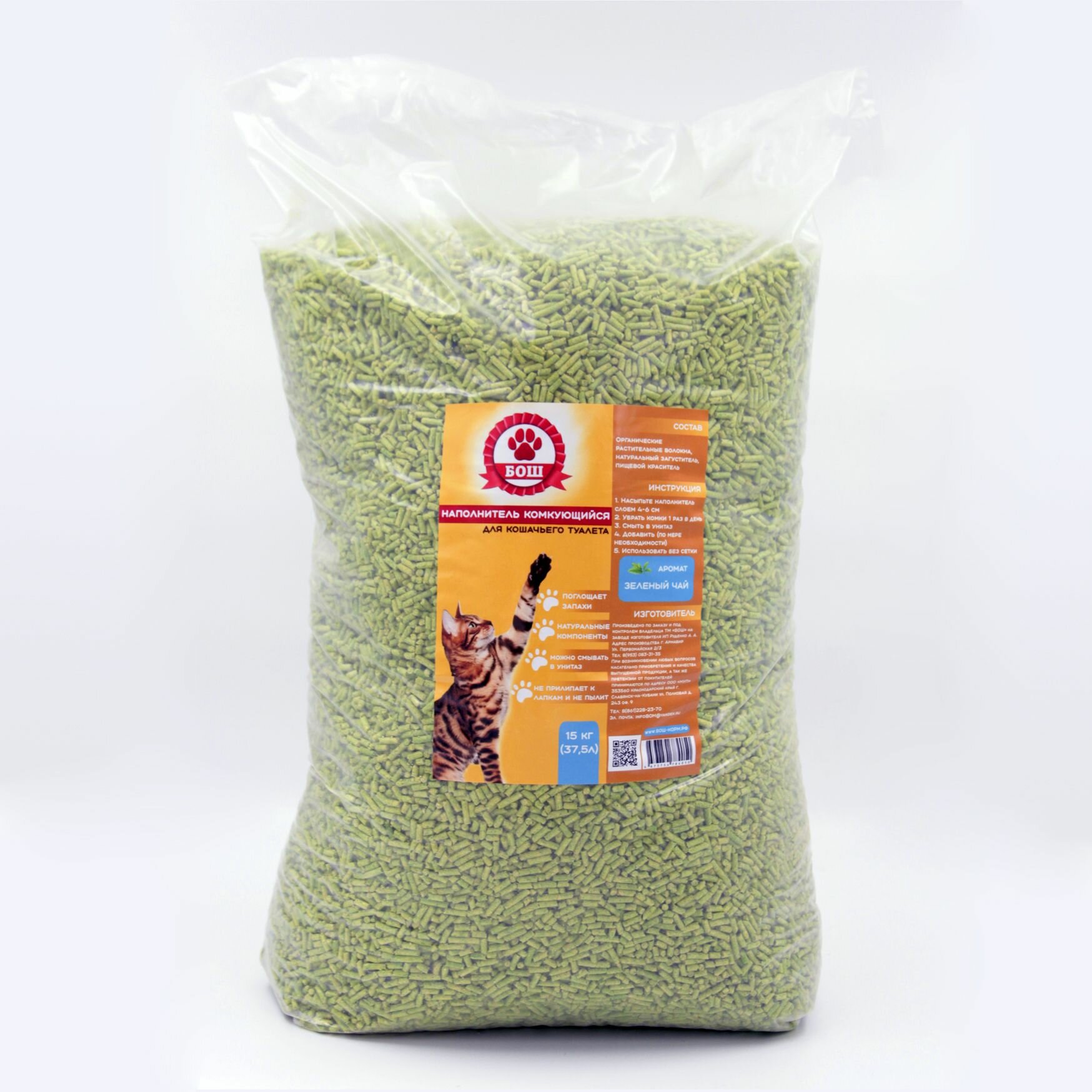 Наполнитель для кошачьего лотка бошпро, комкующийся, аромат Зеленый чай, смываемый, 15 кг