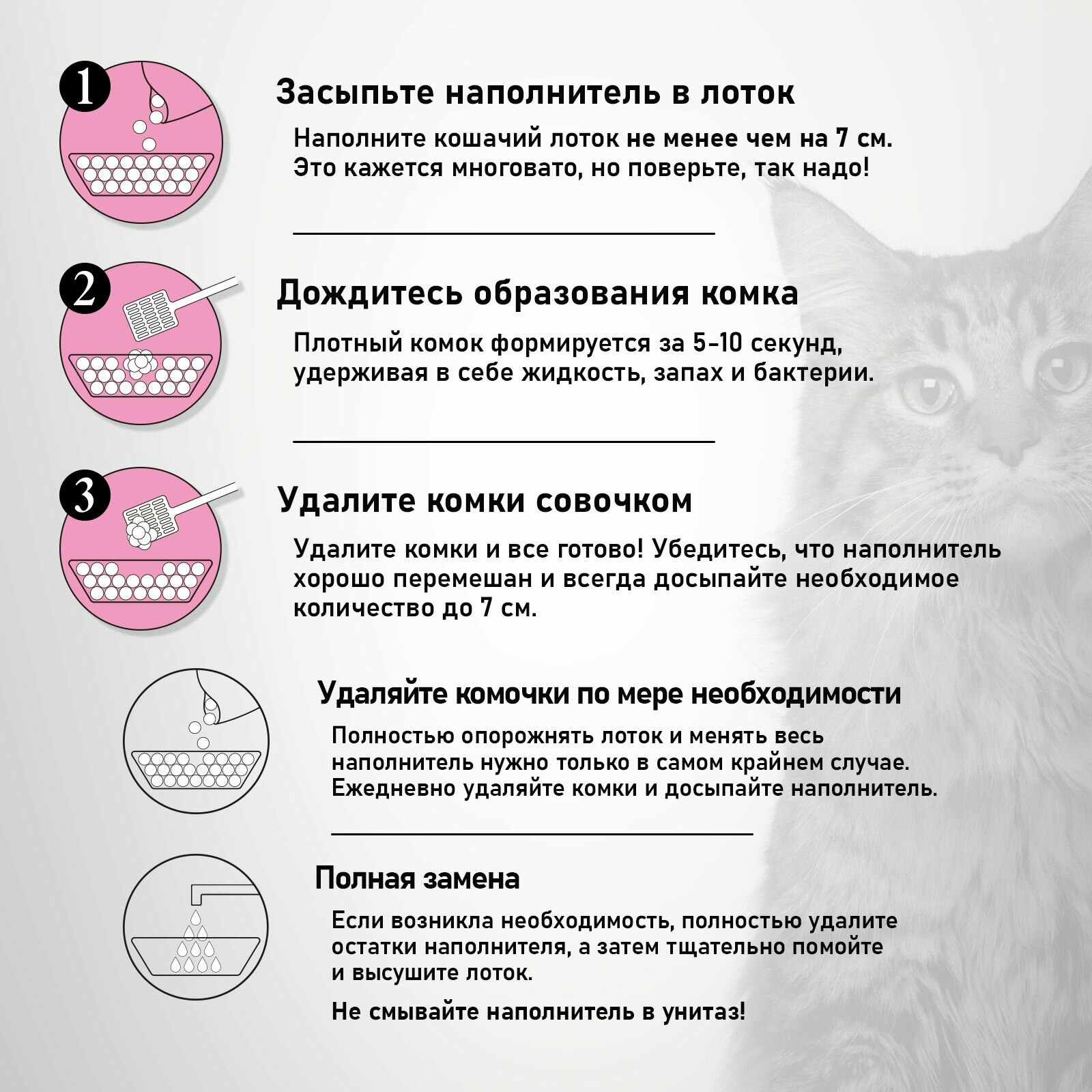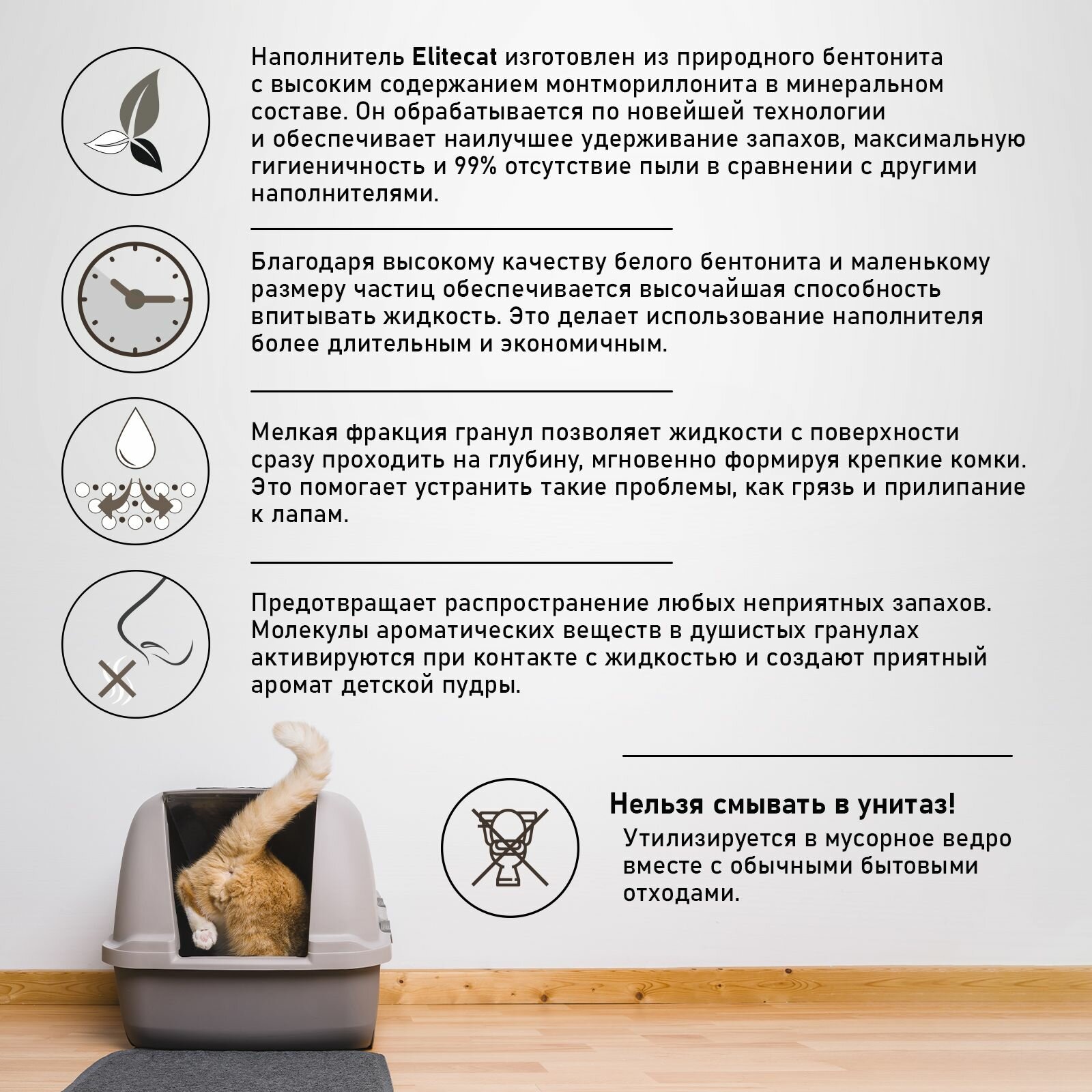 | Особенности | антибактериальный / ароматизированный / гранулированный / для котят / контроль запаха / с защитой от запаха |