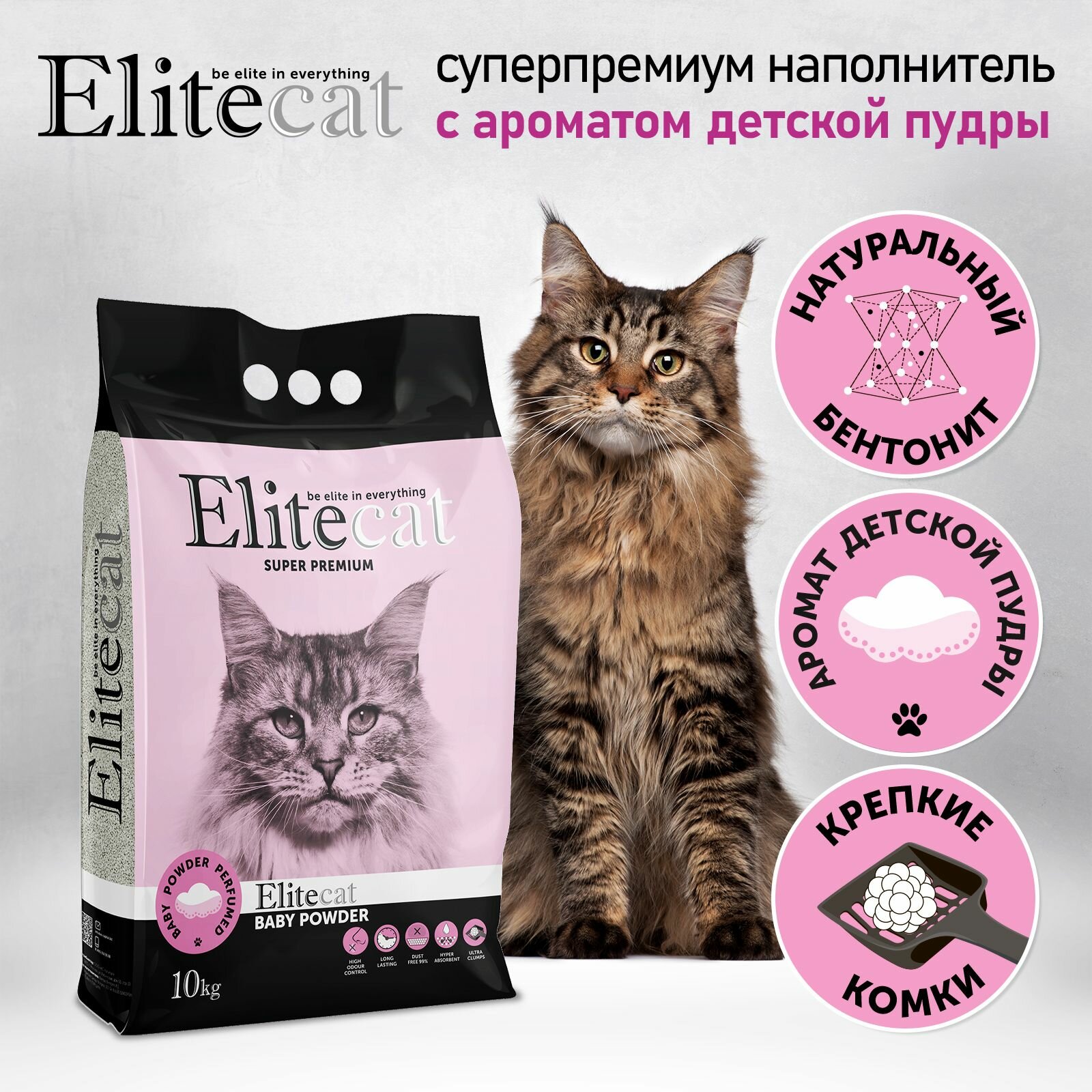 Купить Наполнитель для кошачьего туалета комкующийся с ароматом детской пудры ELITECAT "Baby Powder", 11.4л / 10кг