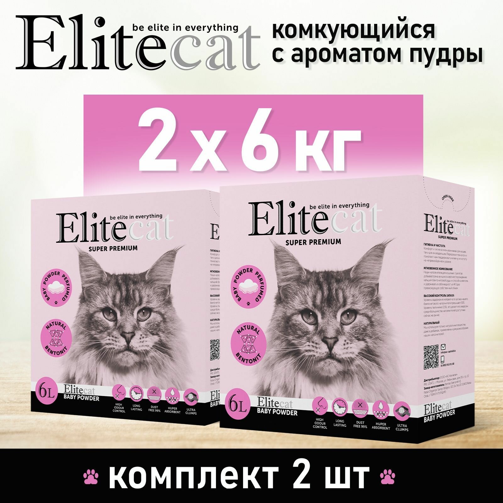 ELITECAT Наполнитель комкующийся с ароматом детской пудры "Baby Powder", 6л, КОМПЛЕКТх2шт