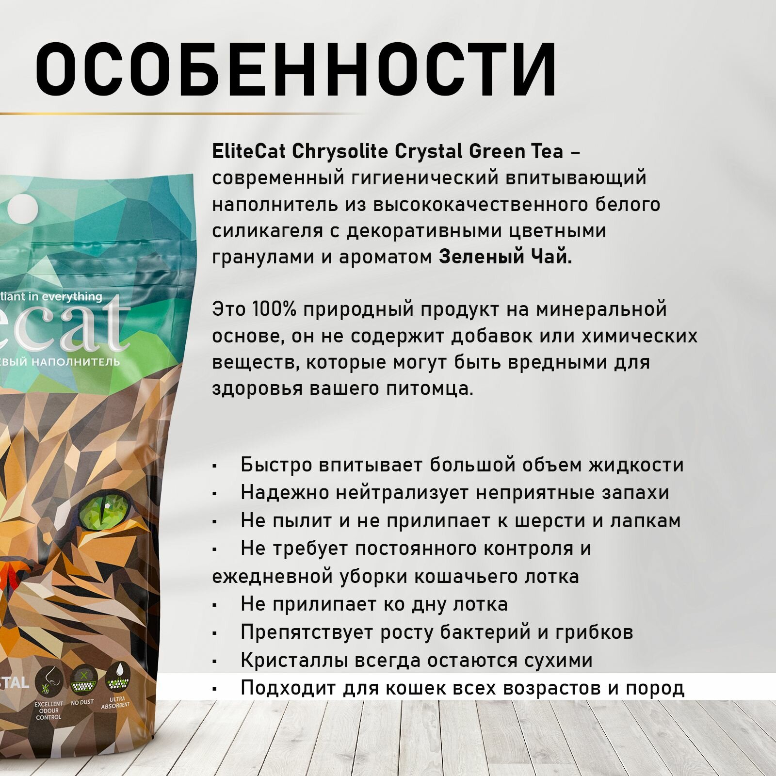 Наполнитель впитывающий силикагель ELITECAT "Chrysolite Crystal Green Tea" с ароматом зеленого чая, 3.8л, КОМПЛЕКТх2шт