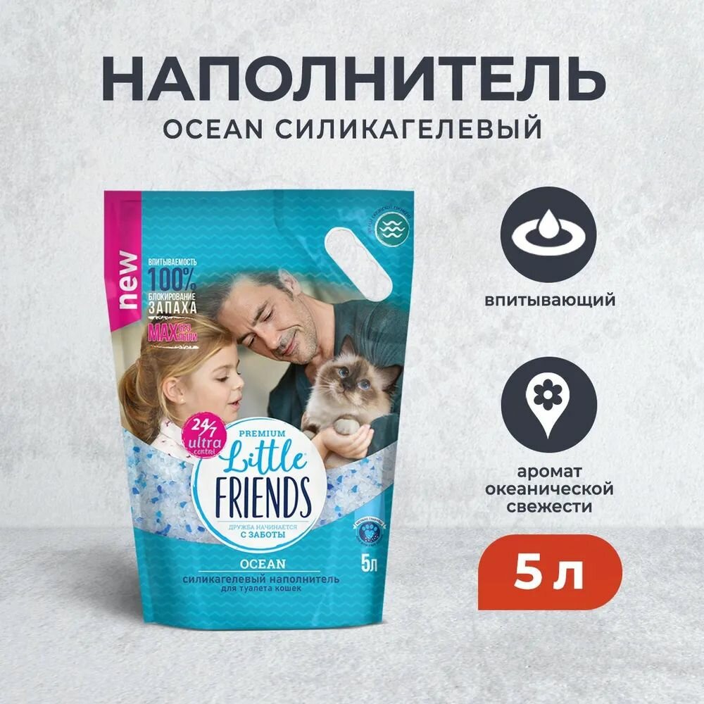 Купить Little Friends Ocean наполнитель силикагелевый впитывающий 2 кг. 5 л.