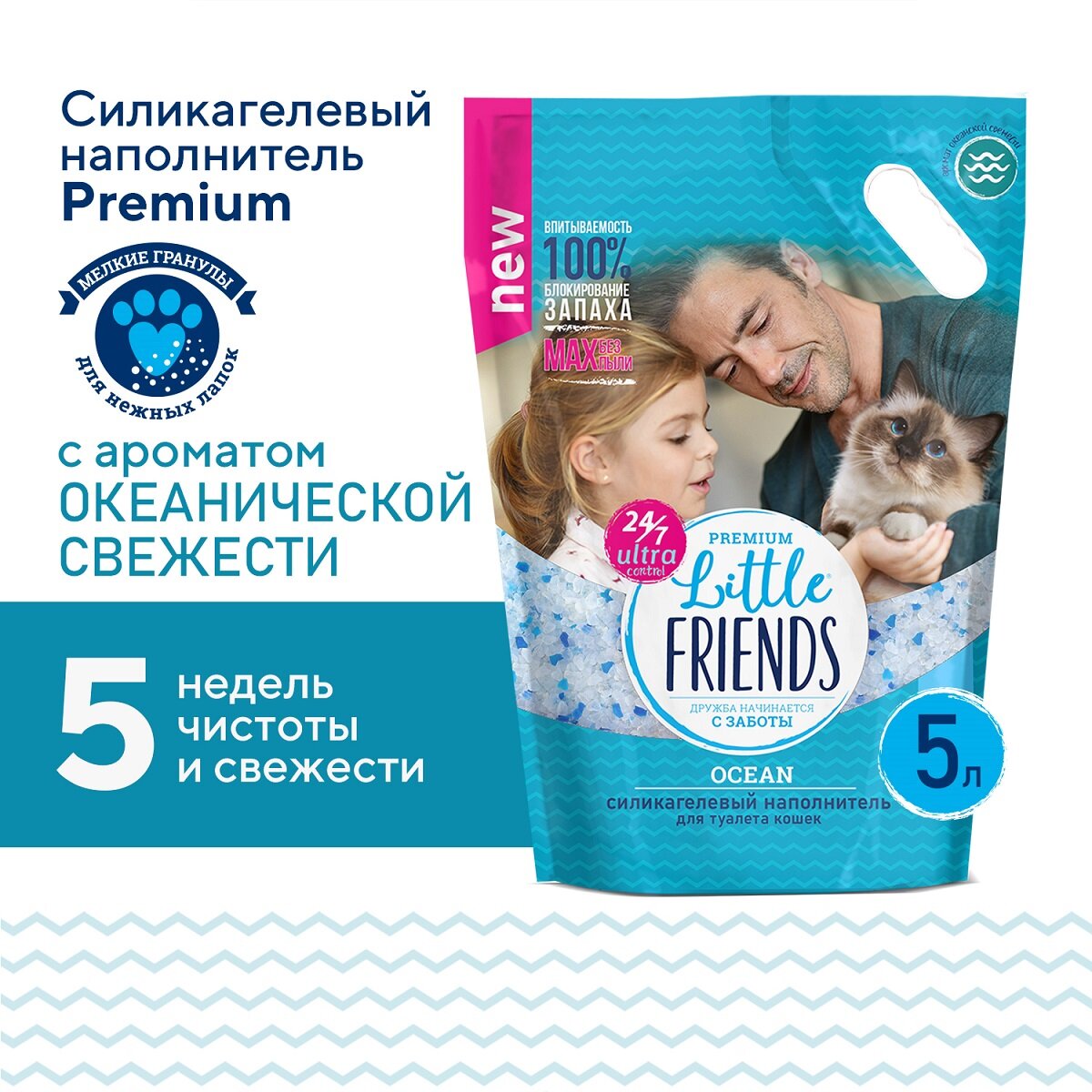 Наполнитель LITTLE FRIENDS OCEAN впитывающий силикагелевый (5 л)