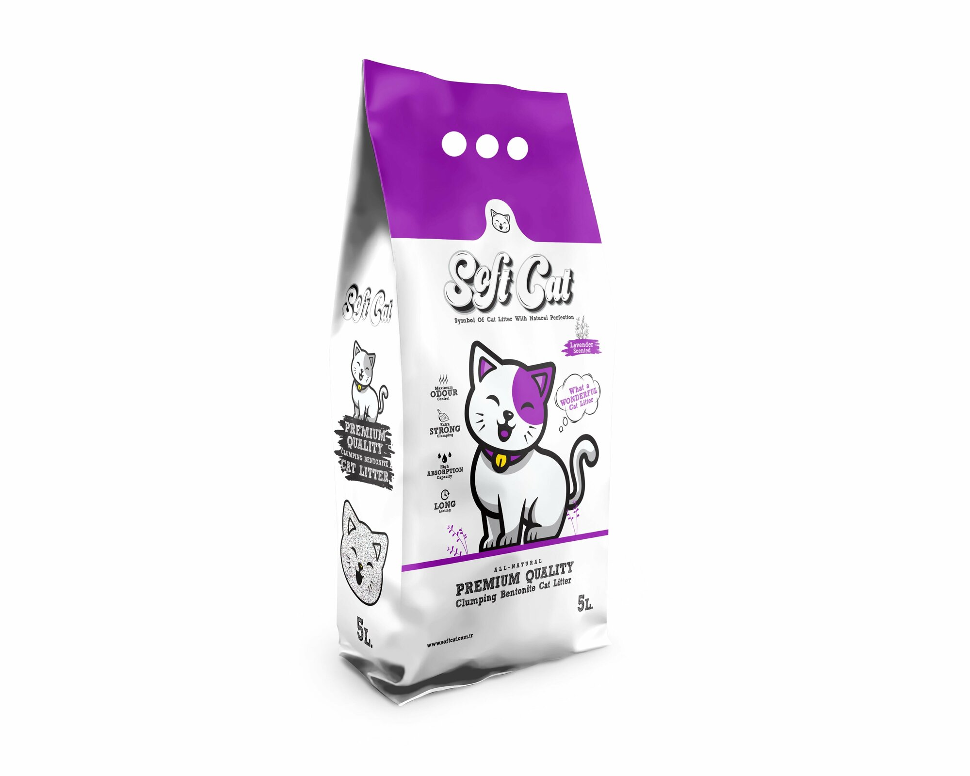 Наполнитель для кошек Soft Cat, комкующийся с ароматом лаванды 5 л