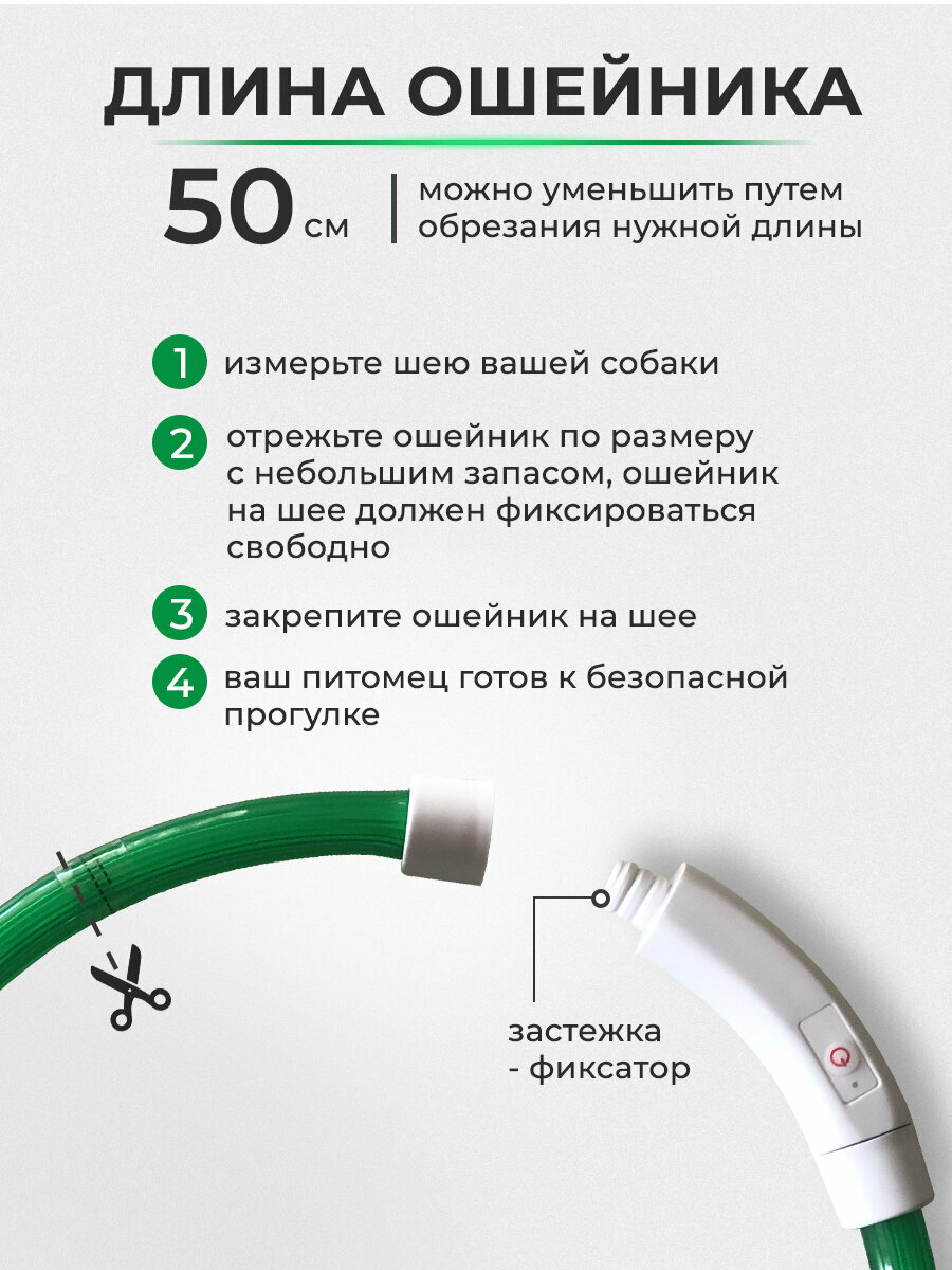 | Комплектация | светящийся ошейник, зарядный USB кабель |