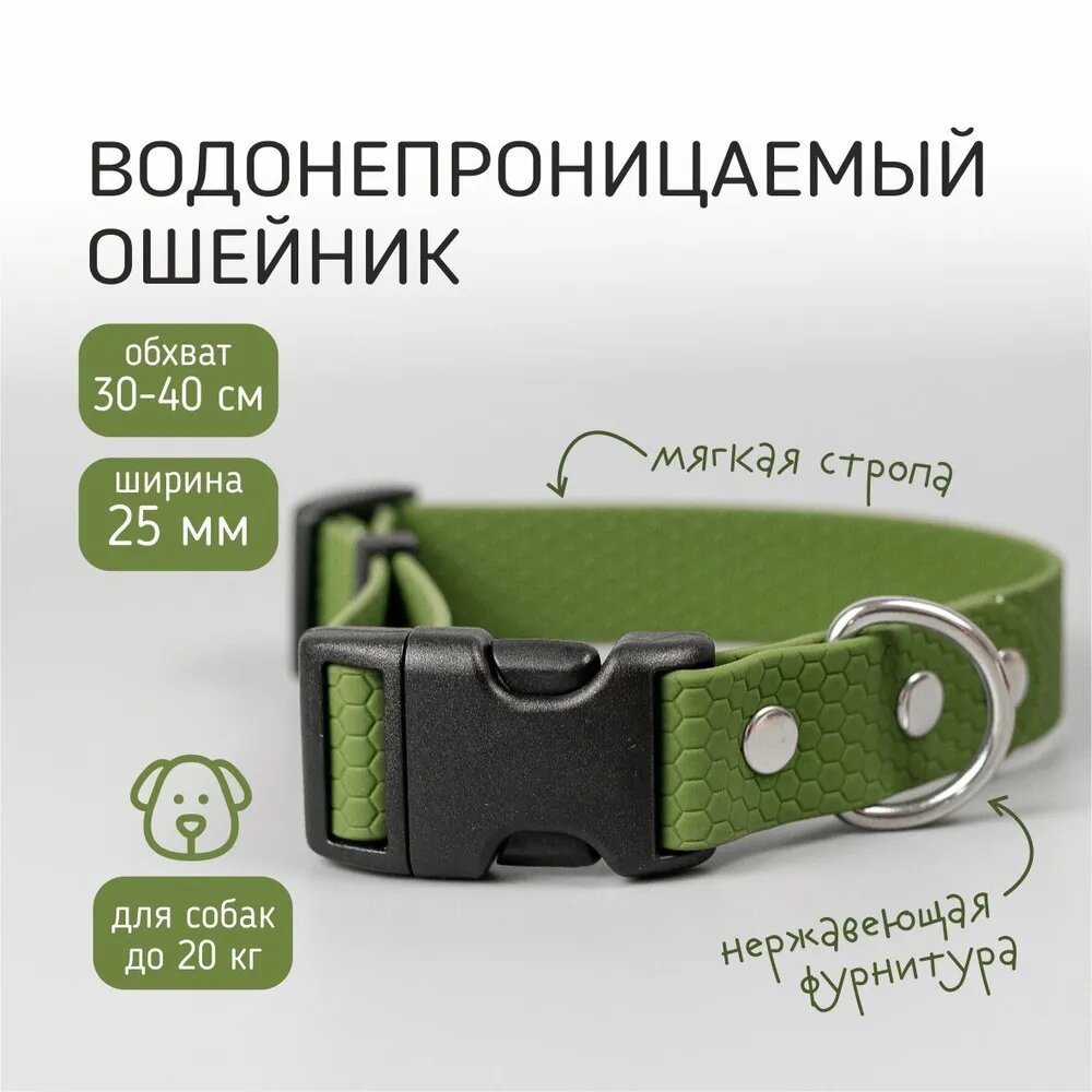 Купить Биотановый ошейник для собак средних и крупных пород из биотана Гексы 25 мм, обхват шеи 30-40 см, цвет хаки. Бобик