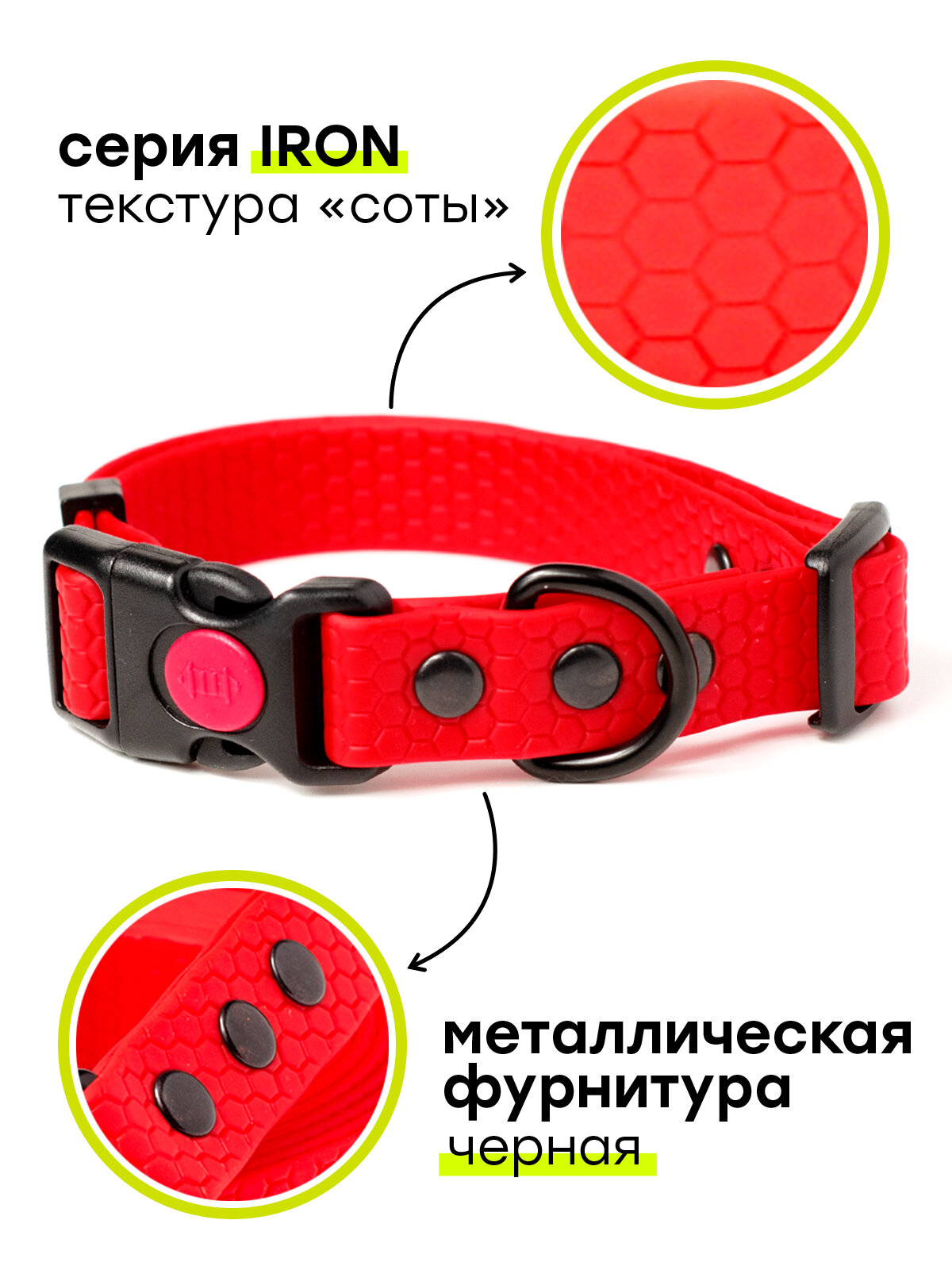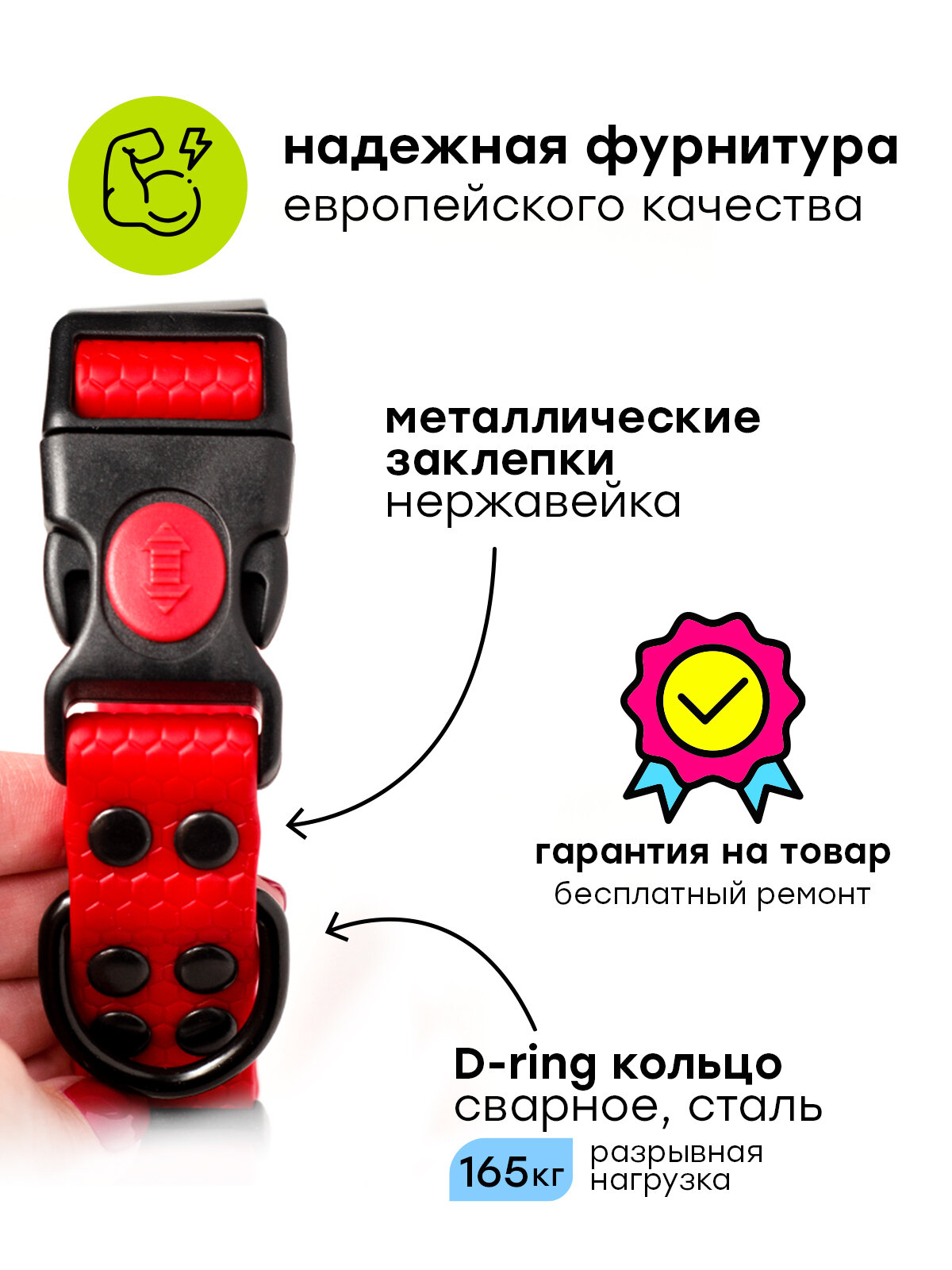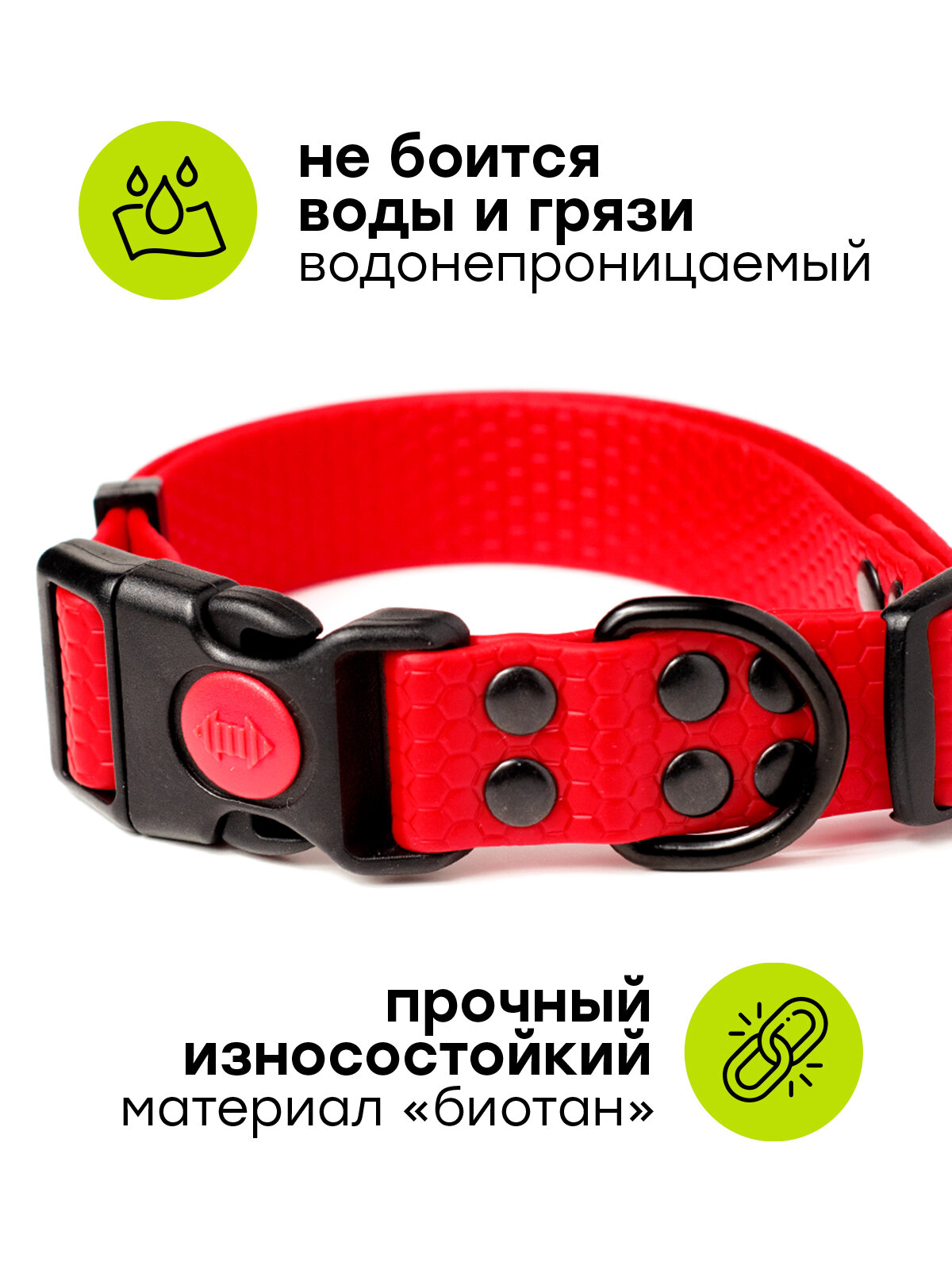 Ошейник из биотана 35-50 см (L), 25 мм, Woofy "Iron" водостойкий, для средних и крупных собак, красный интересное: