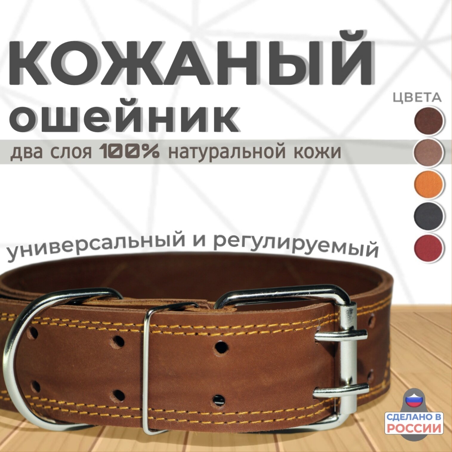 Ошейник для собак кожаный для крупных пород /светло-коричневый /XL 75см /55-67 обхват интересное: