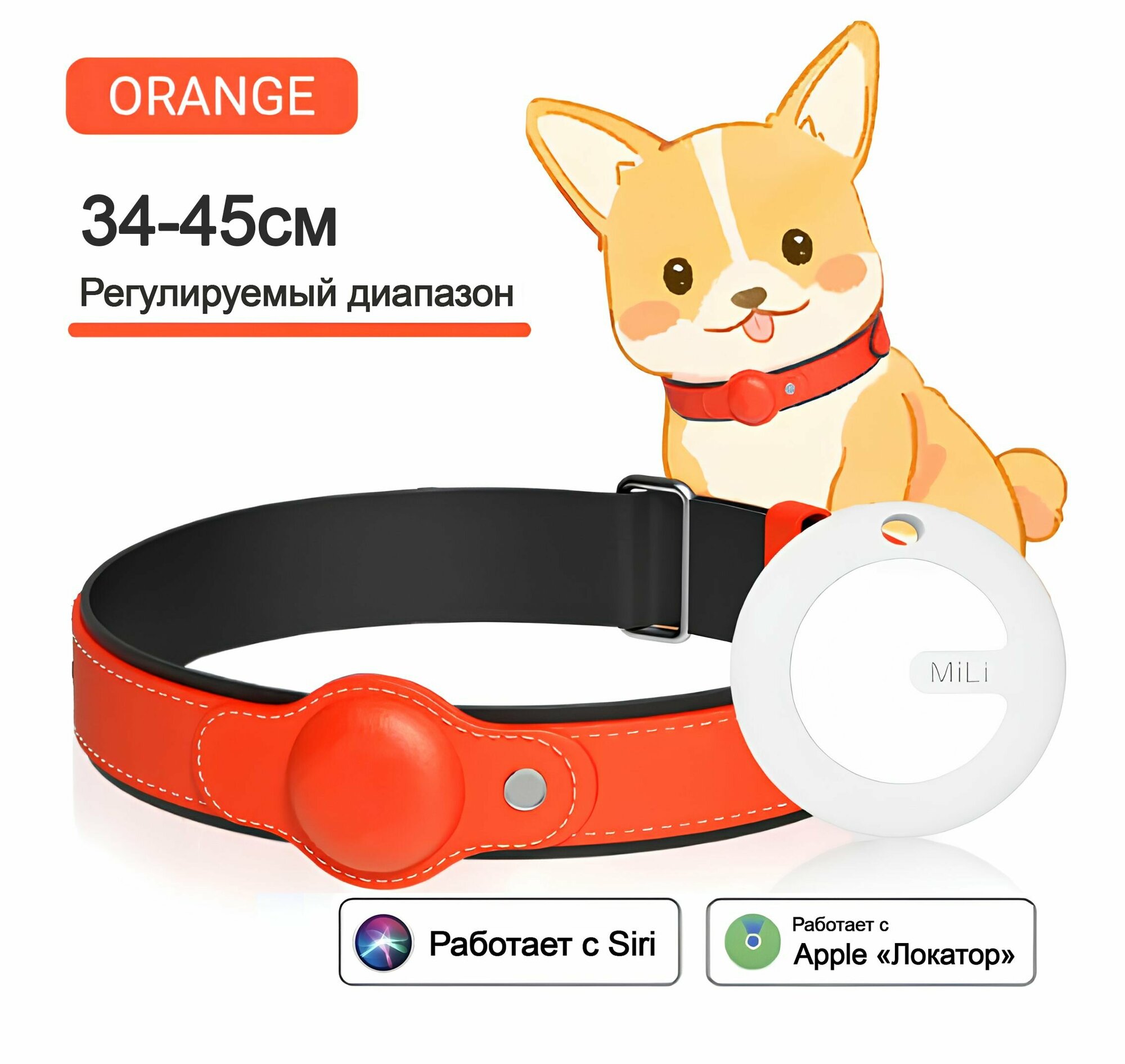 Купить MiLi MiCollar - Влагозащитный ошейник с GPS-трекером MiTag с сертификацией MFI от Apple, Оранжевый 34-45см