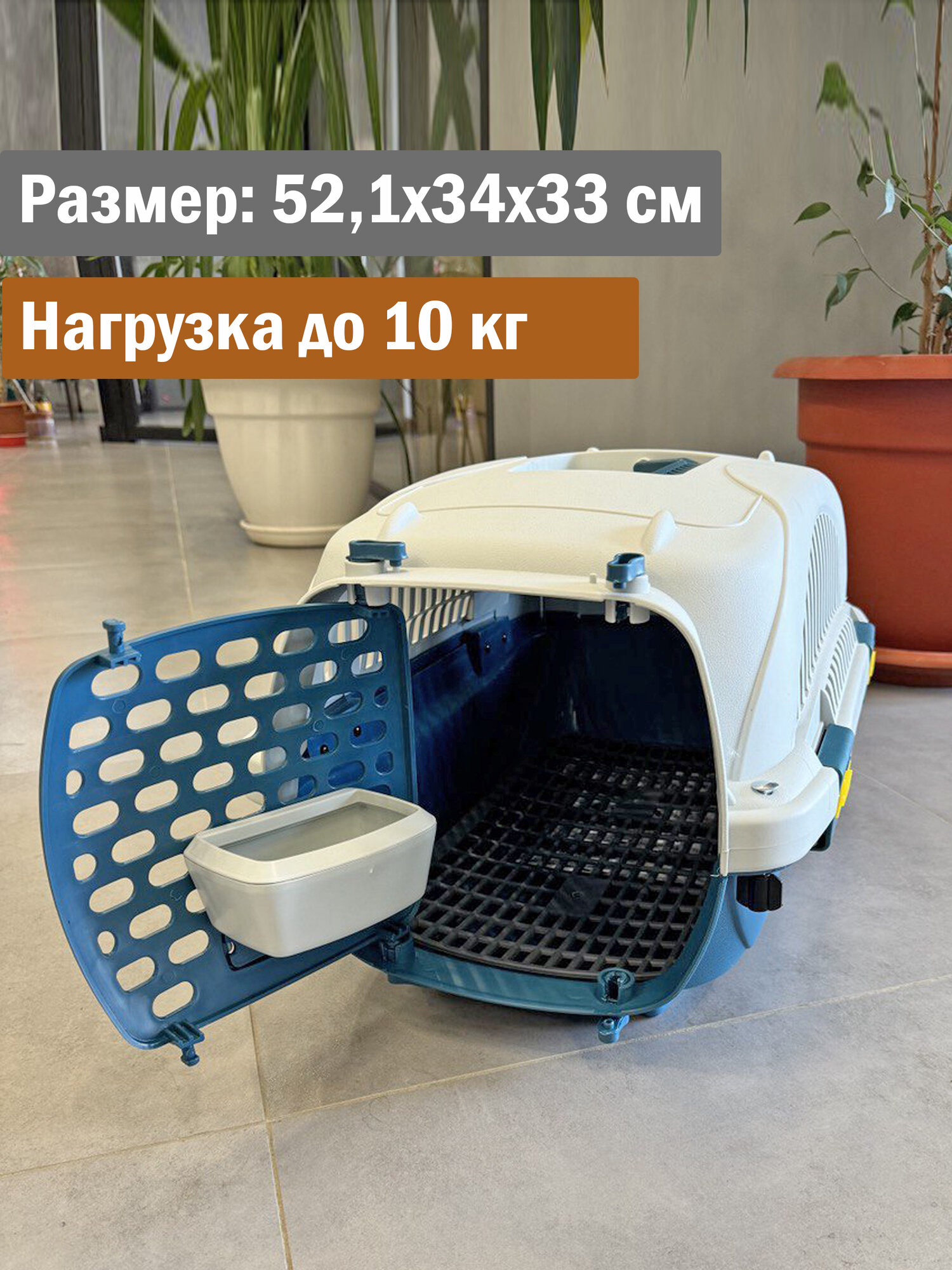 Купить Переноска для животных Чистый Котик с поилкой,решеткой поддоном, синий, пластик 52,1x34x33 см