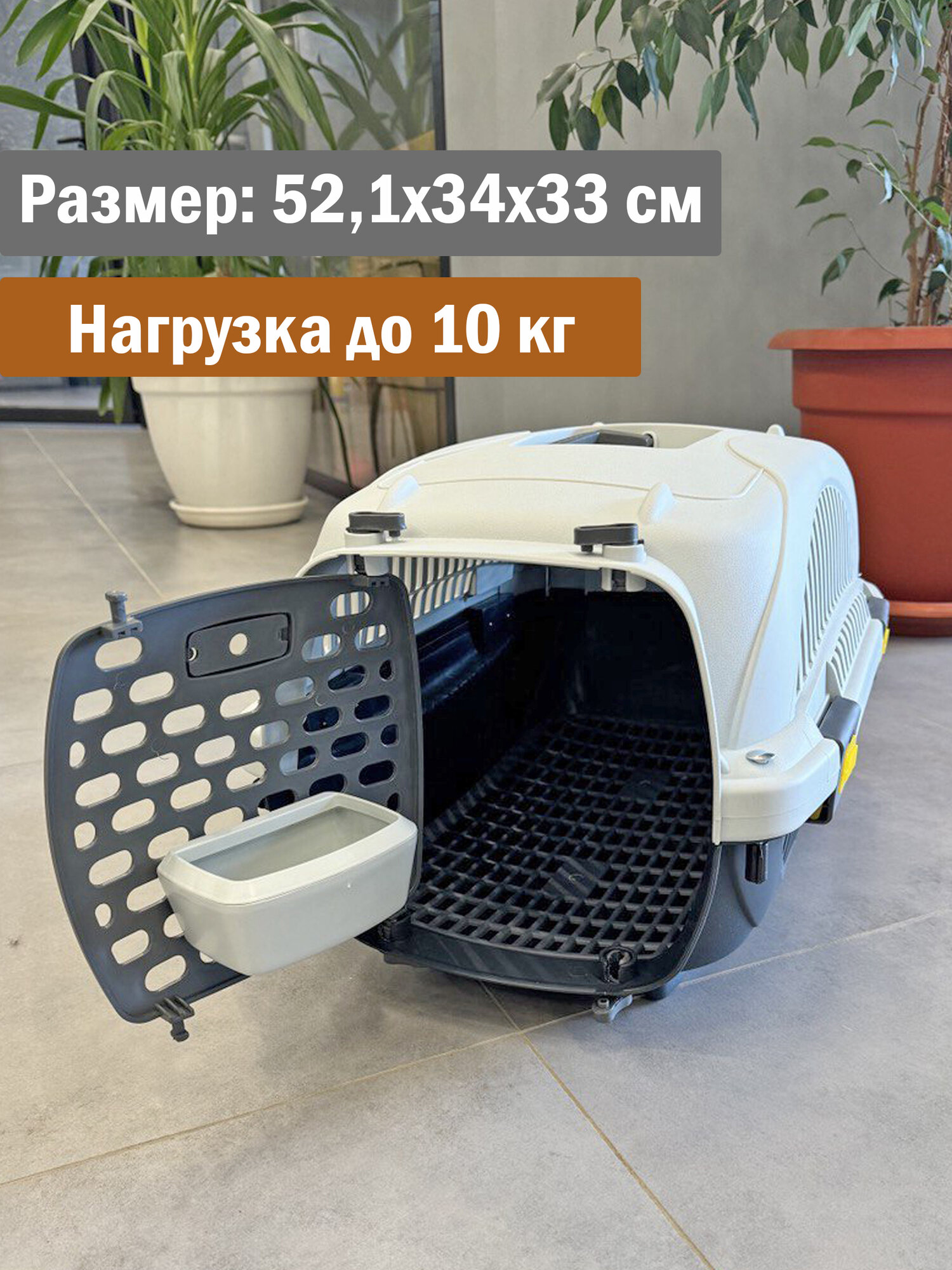 Переноска для кошек "Чистый Котик" с поилкой и сеткой серый, пластик 60x40x42,5 см