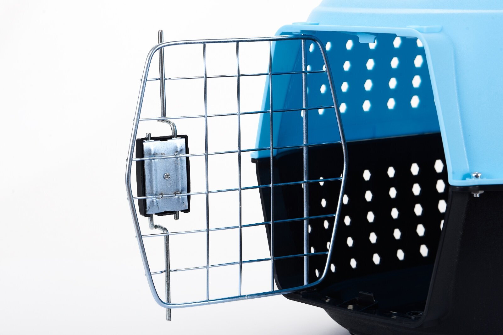 Переноска для животных Чистый котик авиа 48х32х26 см, голубая с металлической дверкой