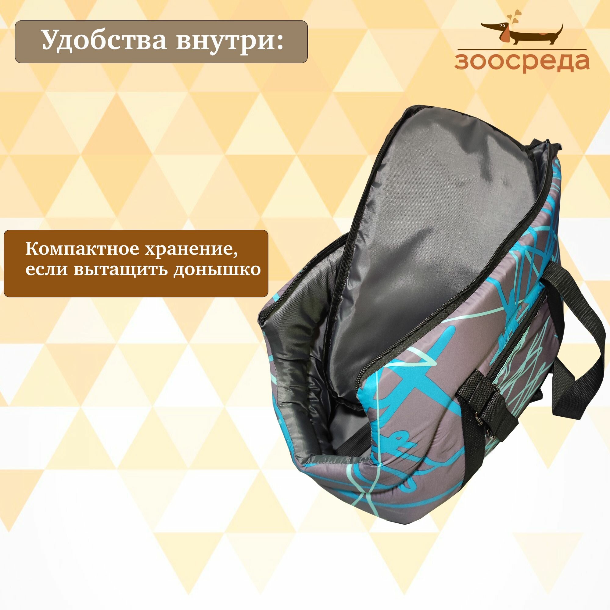Переноска для собак "Кабриолет-М" с регулируемыми ручками и карманом, 49*20*25см, принт Геометрик, твёрдое вынимаемое дно