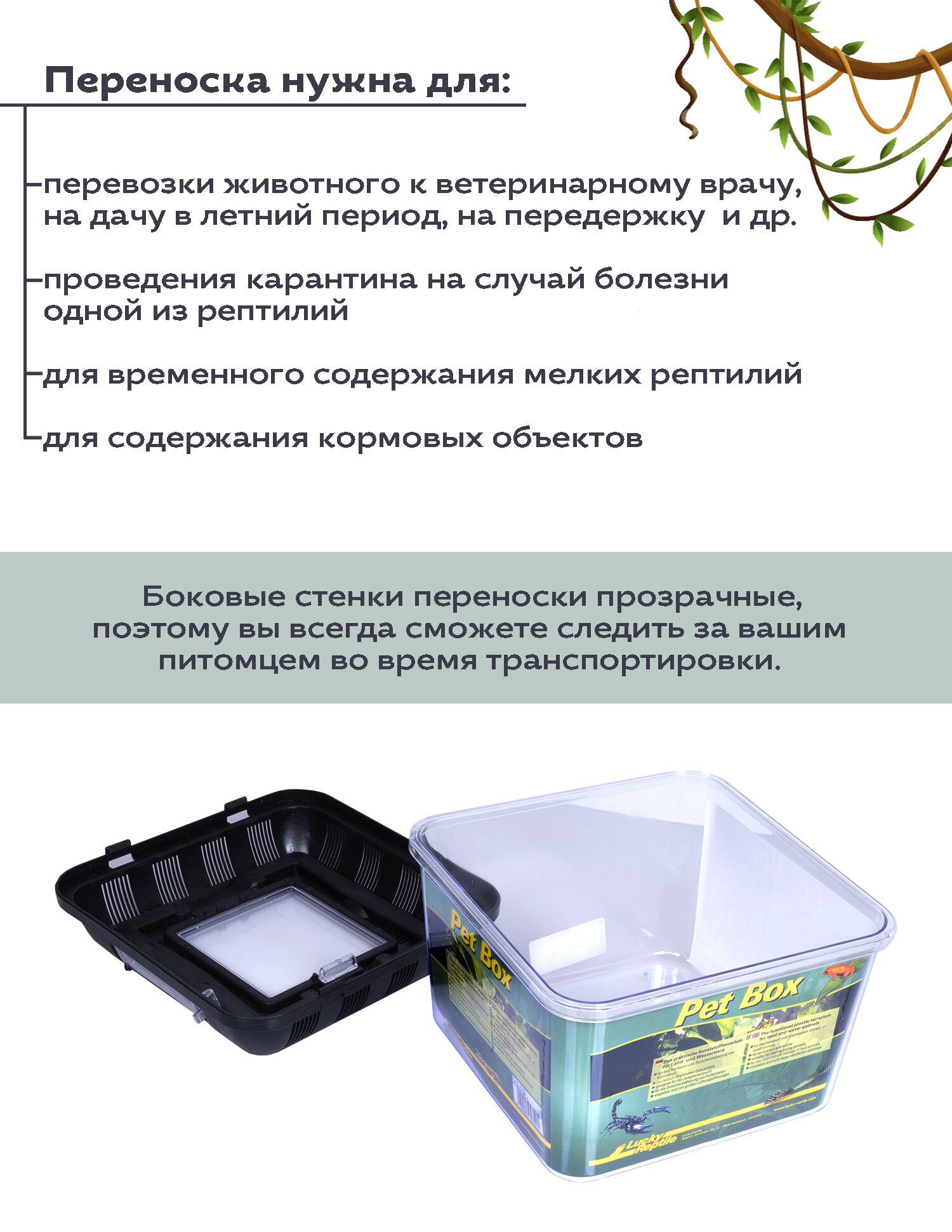 Переноска для рептилий LUCKY REPTILE "Pet Box Small", 20.5x20.5x17см (Германия) интересное: